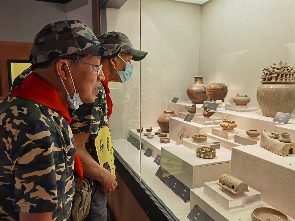 来到杭州博物馆,有序排队进场,橱窗里陈列的诸多老物件,精雕细琢,匠心独具,引起老兵们的阵阵赞叹,从笔架、臂搁、镇纸、鼻烟壶、西洋镜、南宋皇城地图等等古物中,感受杭城浓厚的历史底蕴。