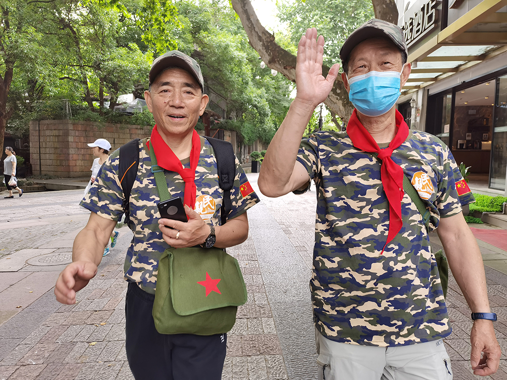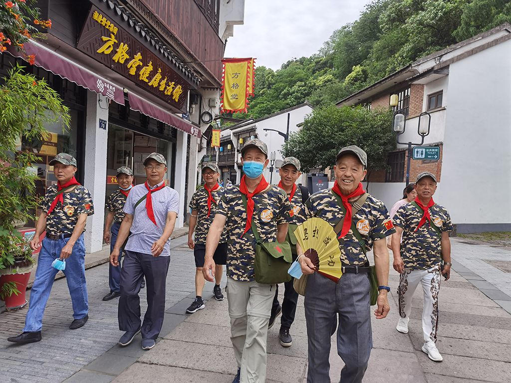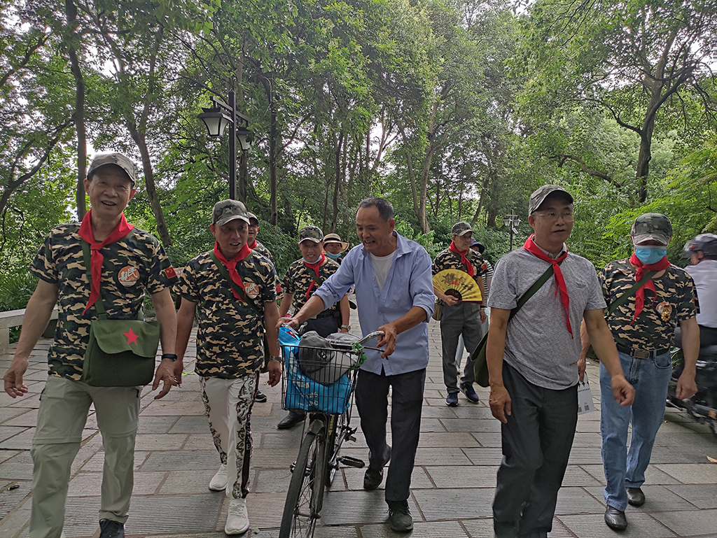 恰是六一儿童节,初夏时节风和日丽,老兵们穿好迷彩服,戴好迷彩帽,背上军挎包,系好红领巾,互相之间亲切地称呼对方一声“老同学”,准备工作完毕后便开始了一段“初心不改,童心未泯”的旅程。