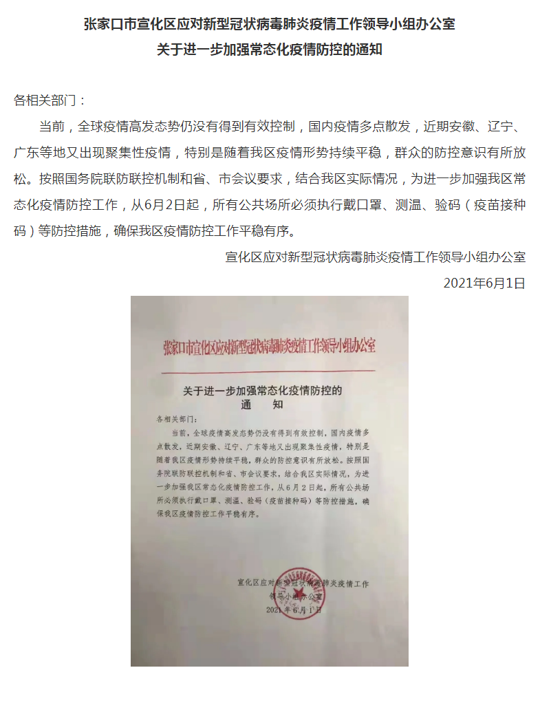 宣化区关于进一步加强常态化疫情防控的通知