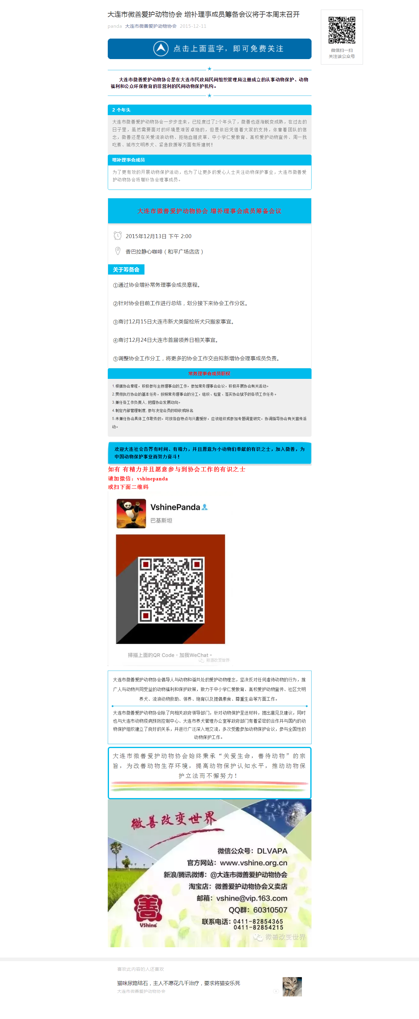 大连市微善爱护动物协会 增补理事成员筹备会议将于本周末召开