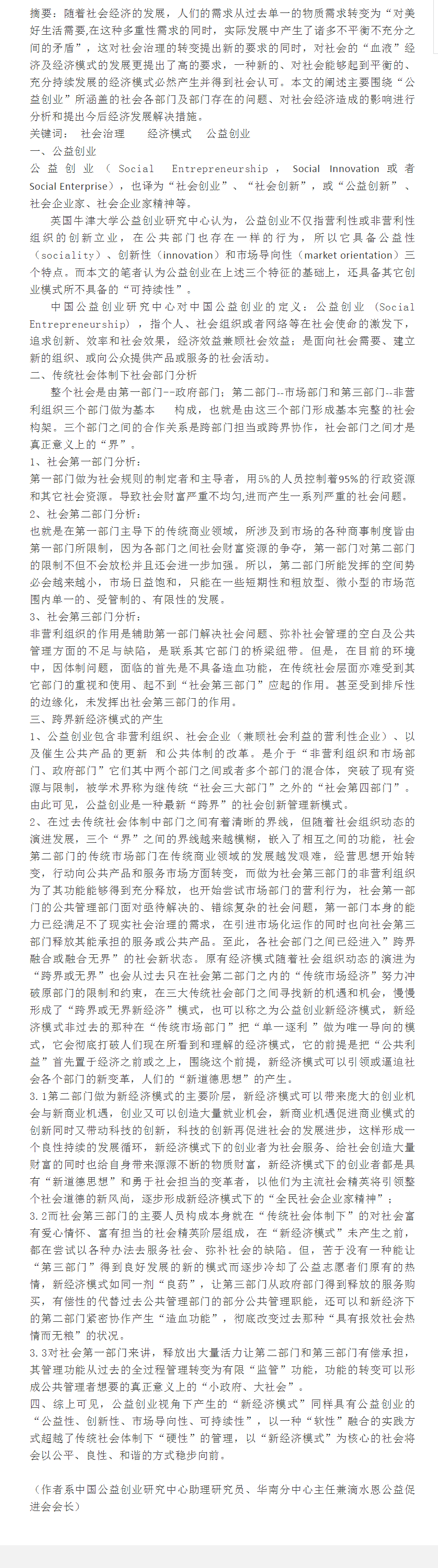 基于公益创业视角下的跨界融合产生的新经济模式
