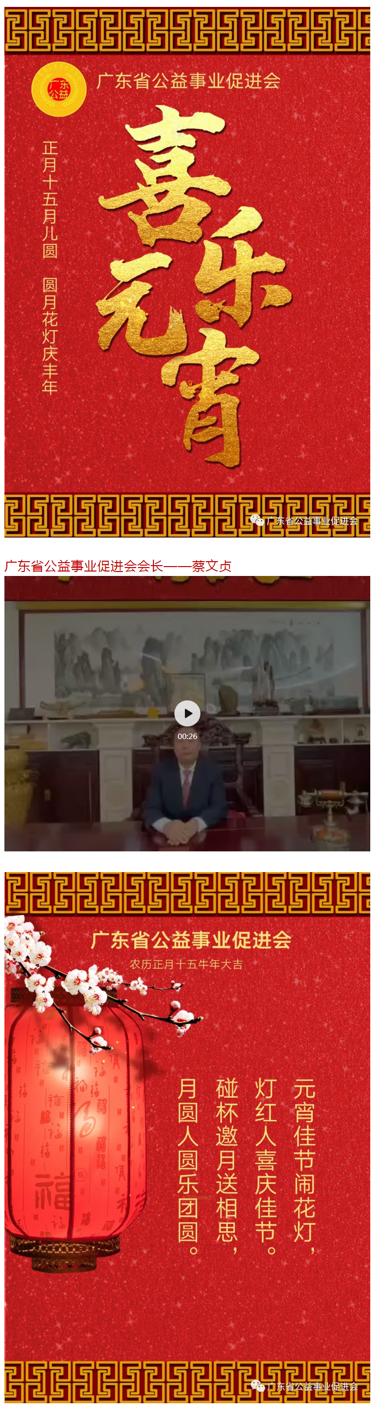 广东省公益事业促进会会长蔡文贞祝大家元宵节快乐!