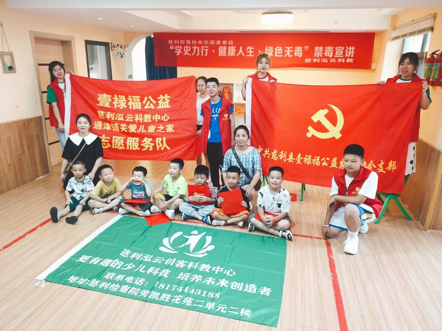 为了纪念建党100周年,培养青少年正确的人生观和价值观,让大小朋友们明白“珍爱生命、远离毒品”,近日,中共慈利县壹禄福公益慈善协会支部和协会青年志愿服务队单位、县禁毒协会志愿者单位——泓云创客科教中心举办了“学史力行·健康人生·绿色无毒”禁毒宣讲志愿服务活动。