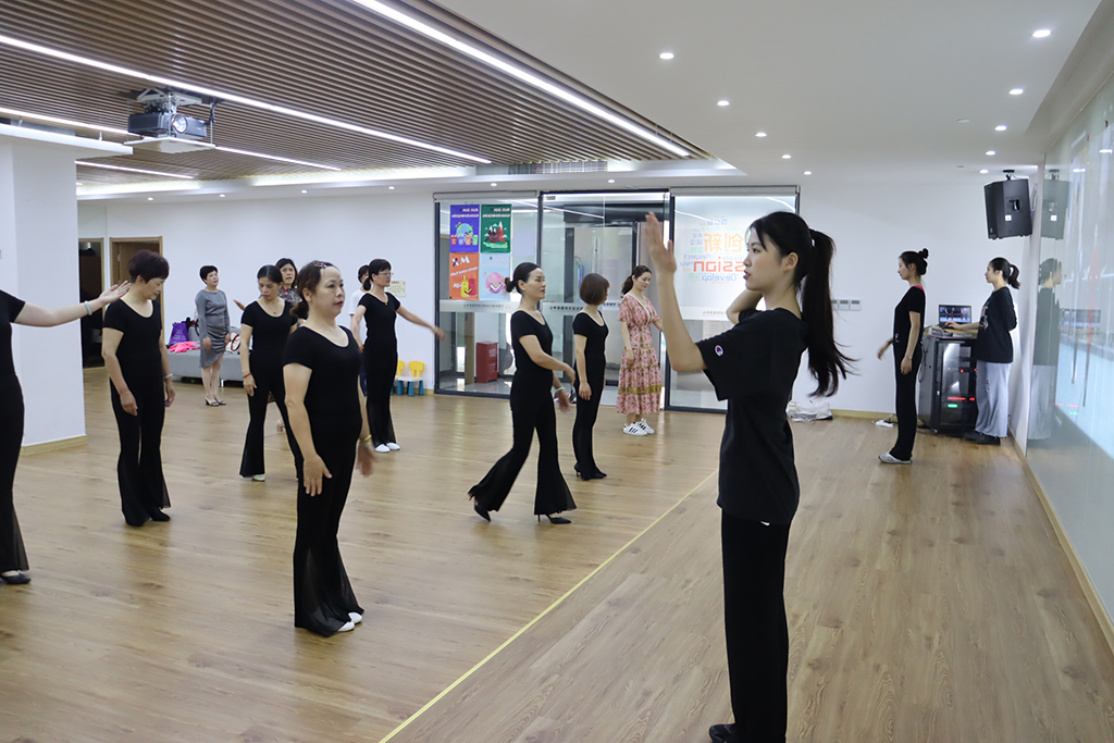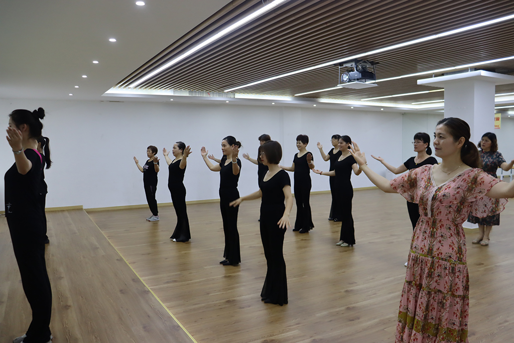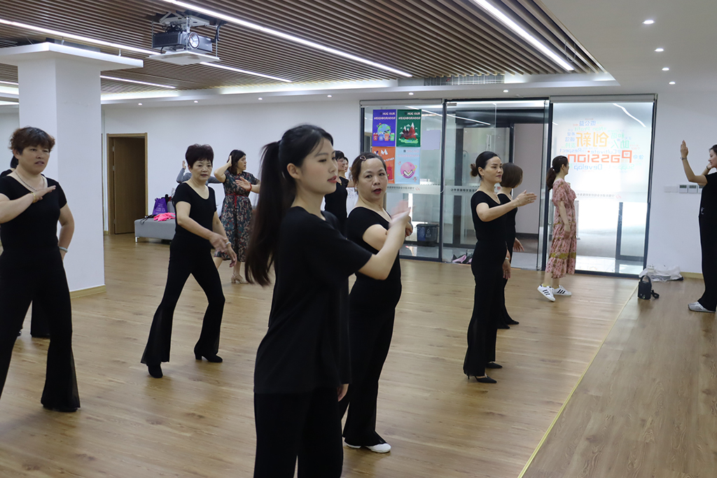 活动中,来自浙旅院艺术学院“蓝天之翼”礼仪社的两位小老师给大家授课。伴随着欢快优美的旋律,大家面带微笑、动作流畅、神态自然、举止大方。这次礼仪操教学将待人接物的站姿、鞠躬等文明礼仪用简单清晰的动作展现出来。阿姨们跟随着老师的步伐将站姿、走姿、迎宾语、鞠躬礼等进行了全方位标准化学习与展示。