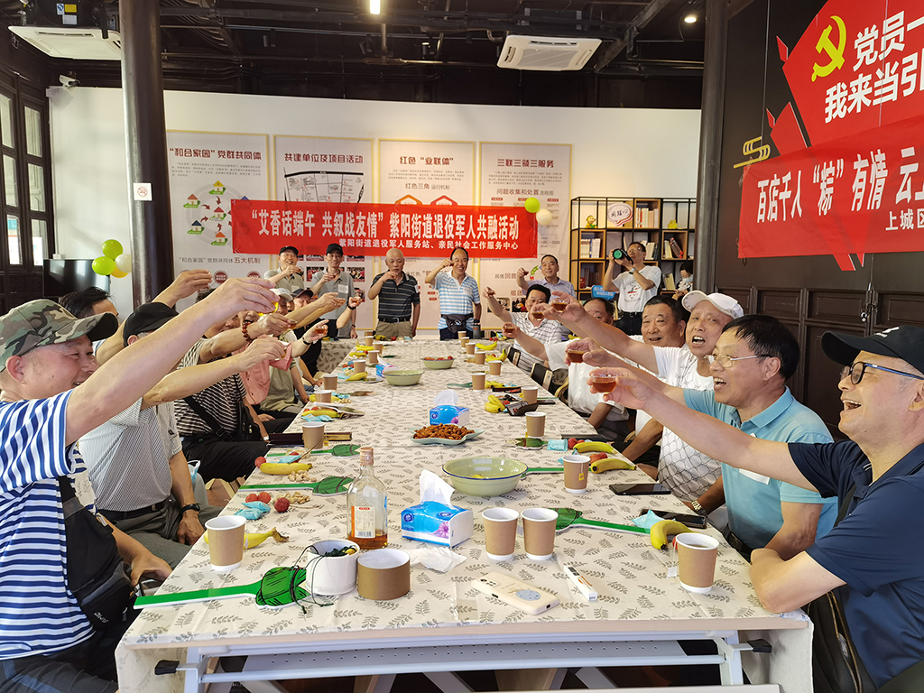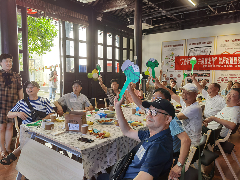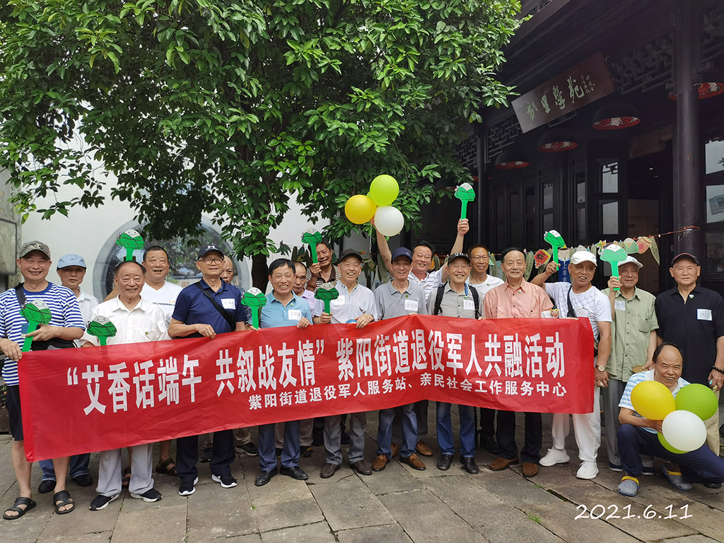 端午佳节,艾叶飘香,为了丰富紫阳街道退役军人的文化生活,扩大退役军人的朋辈交友圈,亲民社会工作服务中心联合上城区退役军人事务局、紫阳街道退役军人服务站于2021年6月11日组织开展了“艾香话端午,共叙战友情”紫阳街道退役军人共融活动。