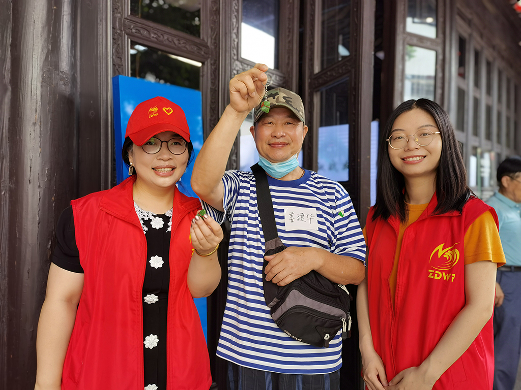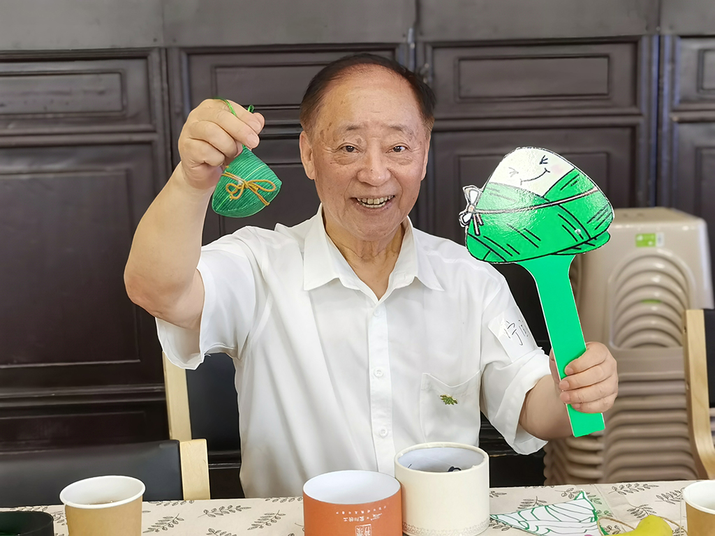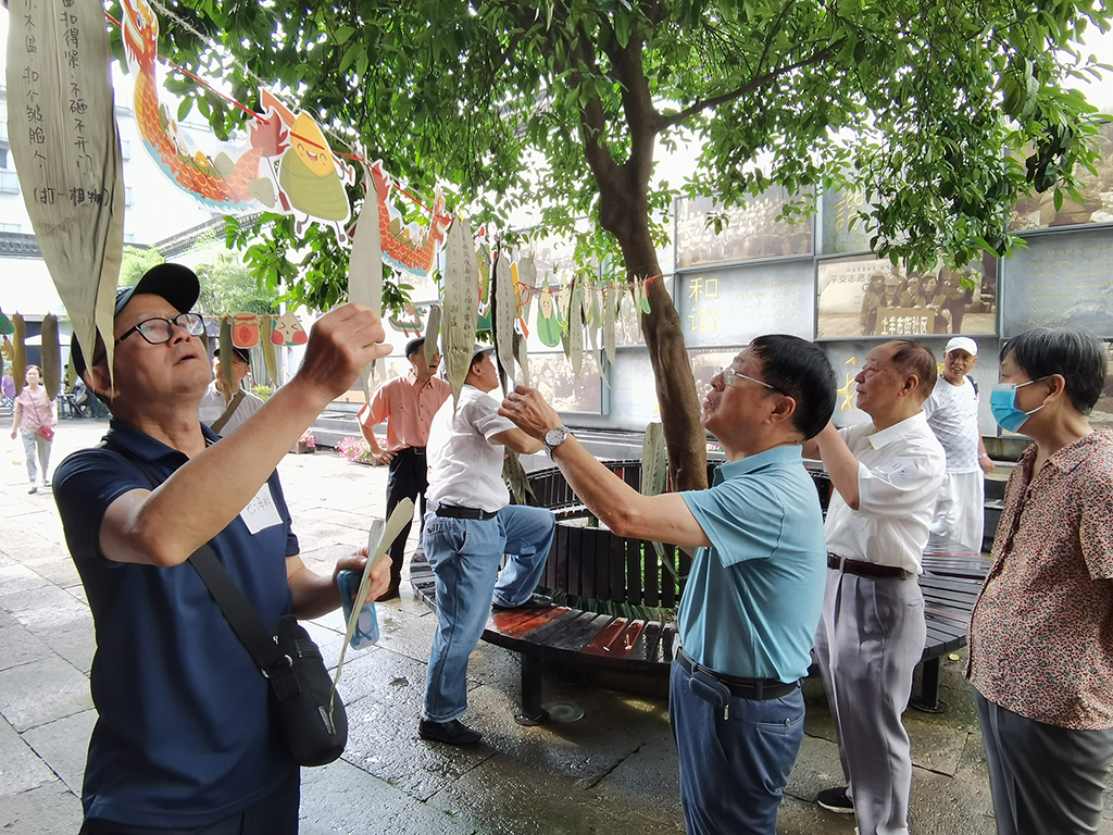 本次活动设计了“粽叶猜谜”、“说文解字之端午”、“端午节的起源与传说”、“端午习俗分享与体验”、“端午趣味知识有奖竞猜”、“端午香囊手作”、“爱心小节目欣赏”七个环节。将谜题写在粽叶上,老兵叔叔们自行挑选,前往兑奖处换取粽子形状钥匙扣,老兵叔叔们互帮互助,收获颇丰。