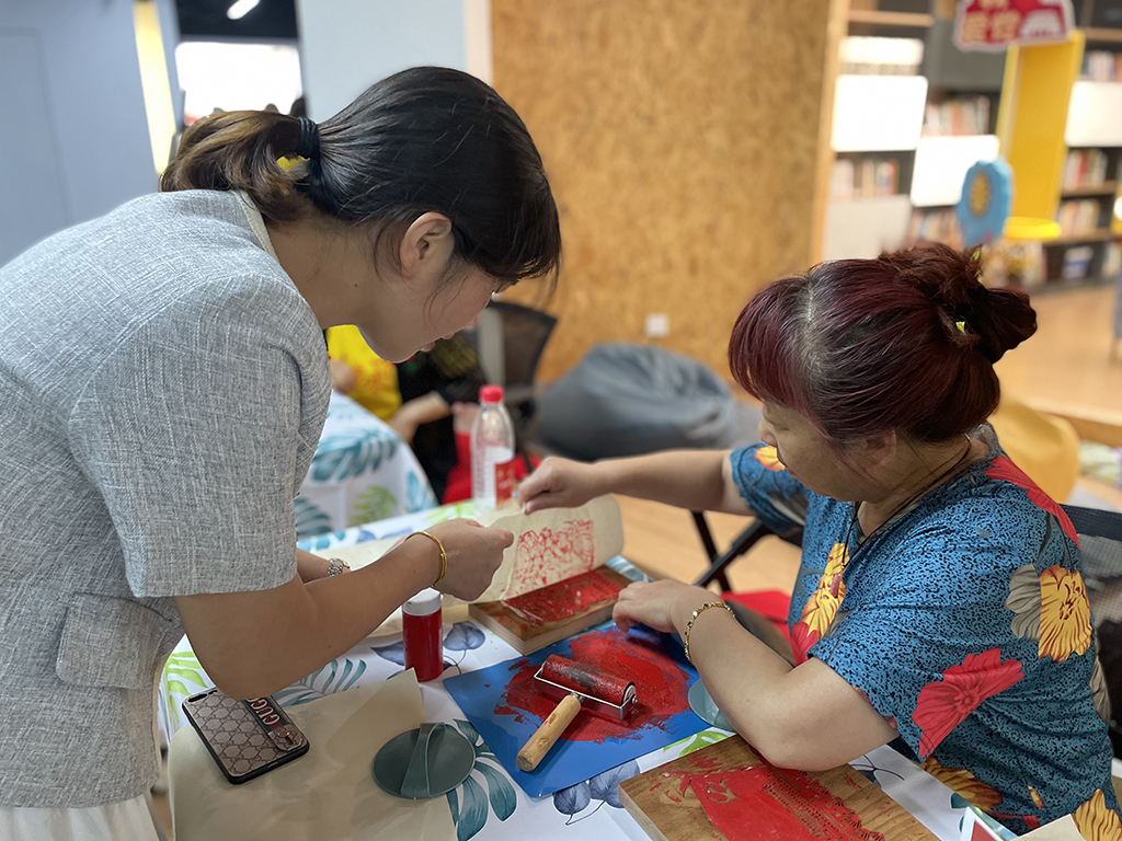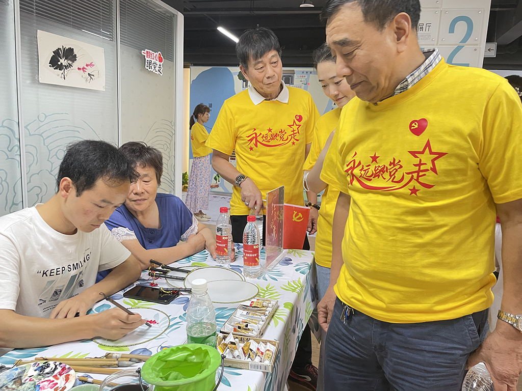 除了文艺汇演当然还少不了游园体验,本次游园为党员们设置了红扇颂党、红印拓情、红心助力(微心愿认领)、书香庆党、忆苦思甜、箭步如飞等党建特色体验摊位。党员们体验传统雕版印刷,欣赏庆党百年书画展览,感受传统艺术的魅力。活动现场充满了欢声笑语,党员品尝着番薯、玉米、黄瓜等红军饭,忆苦思甜。党员们纷纷献出的爱心,认领了微心愿,帮助残疾人之家折翼的天使们实现愿望。