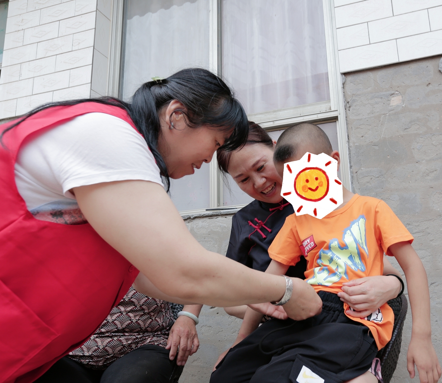新池镇小伟(化名)和奶奶两个人在家,因为是第一次见到小伟,他稍有点胆怯,但还是紧紧拉住志愿者的手。小伟六岁,妈妈在他出生时因难产去世。父亲退伍军人,白癜风患者,不能见到阳光,需要长期用药,现在外打工,收入不足以维持他本人生活及治疗费用。爷爷去世后小伟和奶奶相依为命,但不幸的是小伟患有癫痫病,2020年住院治疗5次。为低保户,事实孤儿。