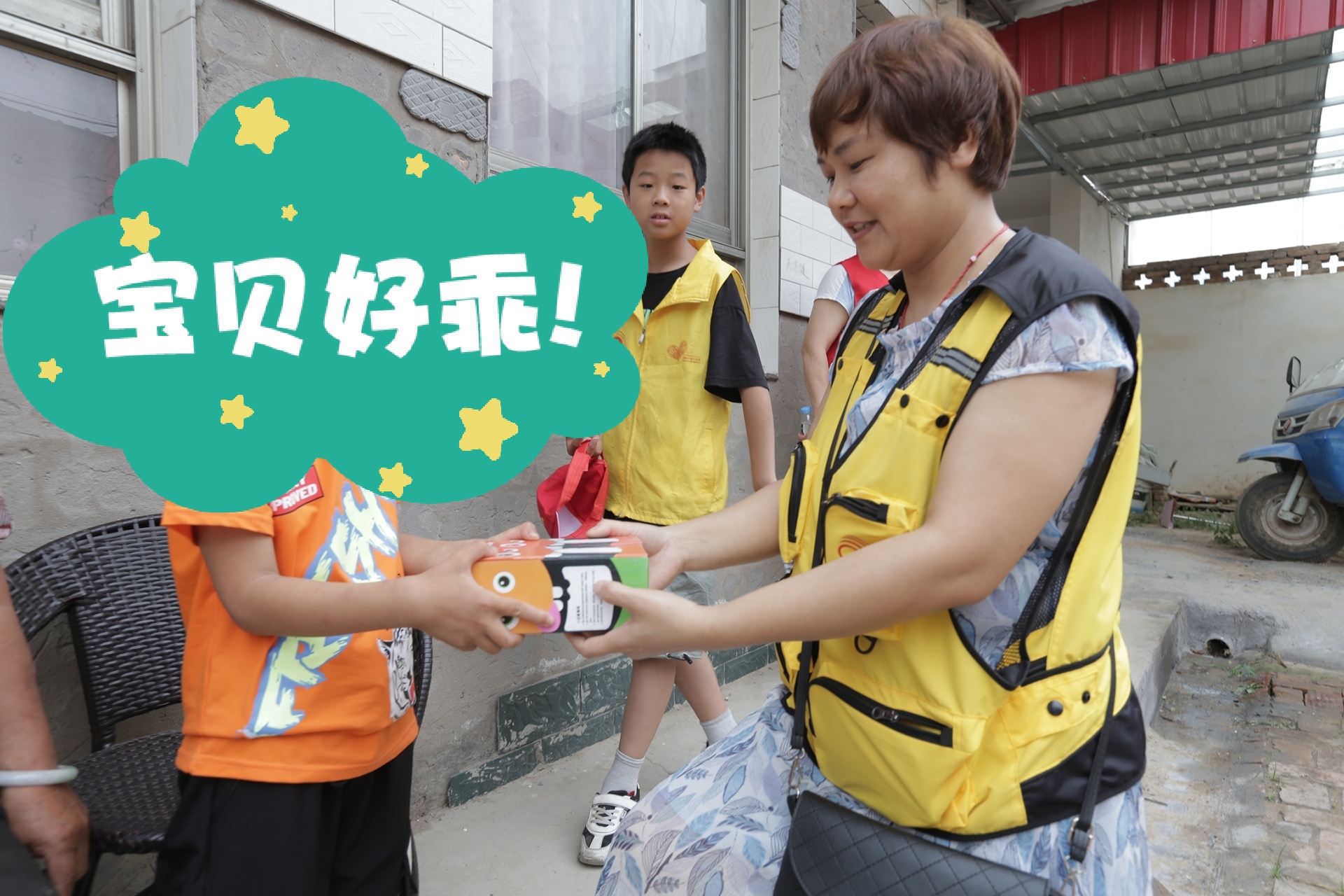 当来到黑池镇豆豆(化名)家时,因为爱心妈妈已经多次来看望过他,他主动拉起志愿者的手。当我们为他换上新衣服,他开心地在拉着我们在院子里看他和大伯种的草莓,养的蜜蜂,还为我们端上蜂蜜水。豆豆父亲2017年因车祸去世,母亲改嫁,由五保户大伯抚养。豆豆患有川崎病,定期在西安儿童医院治疗。