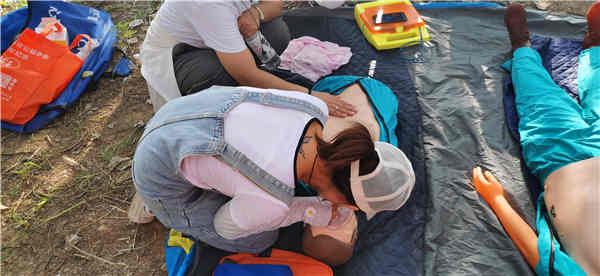 急救培训导师还引导志愿者针对 急救员自身及现场的安全进行了讨论,并就保护 急救员自身及患者的安全给予了总结。
