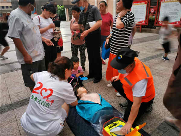针对急救,我们 向 居民们强调了 急救程序, 强调了 要确保自己和伤病 者的安全 。 针对急救员的自身安全,我们建议在有条件的情况下,戴上一次性手套,同时通过示范,讲解了被血液污染的手套如何脱下及如何处理。