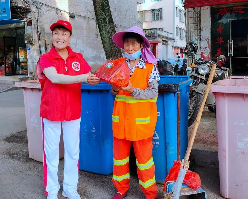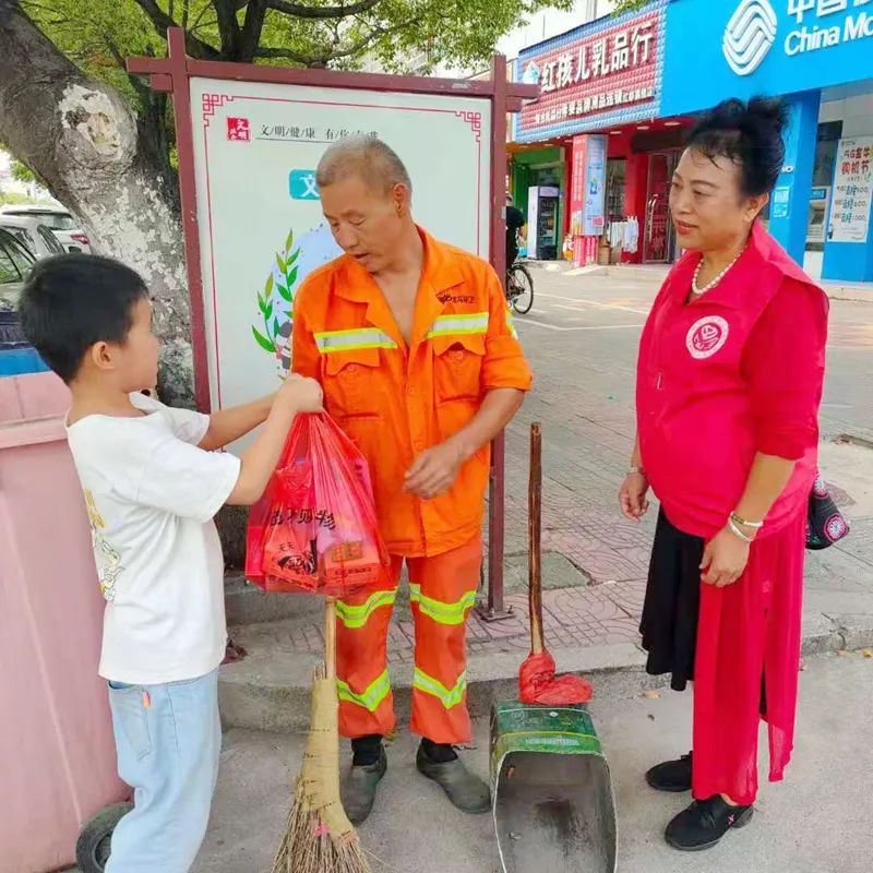 参加活动的志愿者年龄涵盖了儿童到老人,有小学生、教师、退休人员等,大手牵小手,一起做公益。活动中,志愿者向正在街边工作的环卫工发放了爱心清凉包,包含了正气水、风油精、毛巾、饮料等物资,表达对环卫工作的真诚认可和肯定。环卫工人感到很高兴,也感到很意外,纷纷表示,感谢市民的认可和支持,扫好地是环卫工的本分工作,一起让瑞金更美丽。(作者瑞金市瑞林初中 李璐)