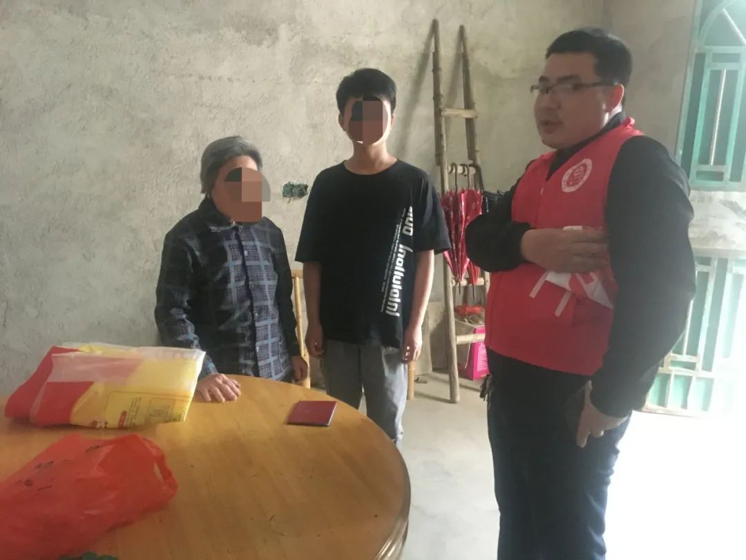5月8日,瑞金市万田乡青坝小学邓雅莉等老师对青坝村谢小鑫姐弟进行走访。