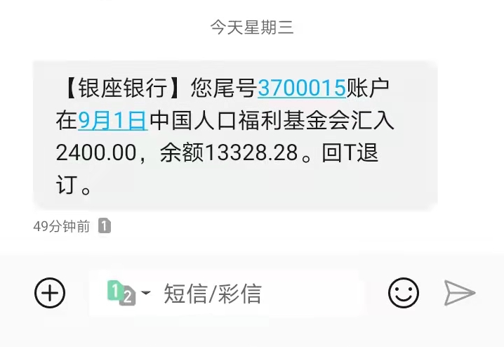 9月1日恰逢开学之日,中国人口福利基金会将拾穗计划助学金2400元汇入瑞金市赋能济困公益协会(以下简称赋能公益)银行账号。其中瑞林镇瑞红村赖阿超(化名)和万田乡青坝村谢小鑫(化名)各1200元。