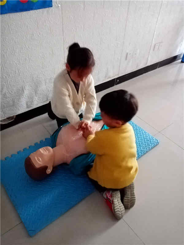 从曾经的害怕,到如今的坦然面对,小朋友们已经习惯了模拟假人的存在,也能将胸外按压做得有模有样了,我们的志愿者及老师都很开心。