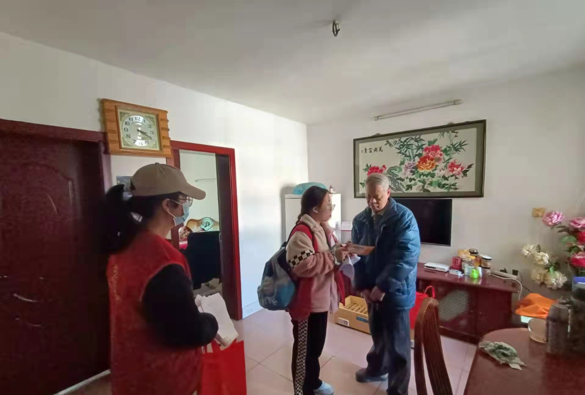本次探访服务活动分为四组同时进行,壹社区社工及大学生志愿者们秉持“边走访、边服务、边解难”的宗旨,每到一户老人家中,都主动了解老人近期的身体状况和生活情况,倾听他们的需求和心声,并向老人宣传冬季安全用电、用气方法、有关注意事项以及发生火灾后如何逃生自救等安全知识,以增强老人的安全意识和自救能力。