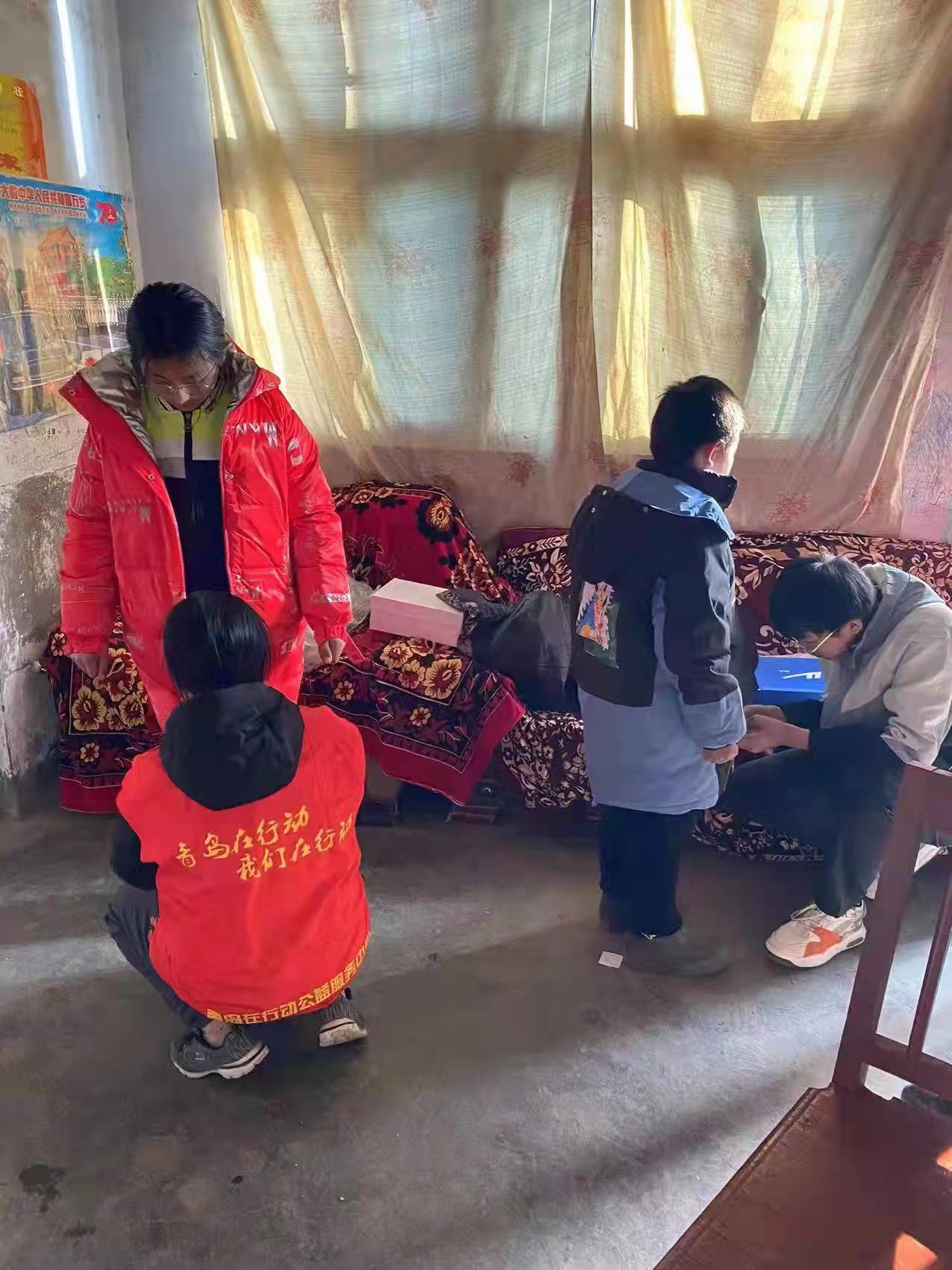 一天我们走了四个乡镇八个村庄,对13个资助的学生家庭进行了回访,了解了孩子们现在的生活学习情况,看到孩子们都长高了,身体健康志愿者们都很欣慰,鼓励孩子加油,并送上爱心朋友们的暖冬包。