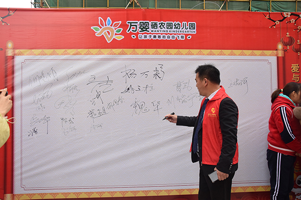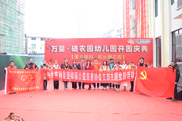 随后,刘书记带领支部党员先锋志愿服务队来到壹禄福慈善会副会长、县直四分会、金岩分会会长单位万婴·硒农园幼儿园参观学习,时值万婴·硒农园幼儿园开业大典,党员先锋们为硒农园幼儿园送去了热烈祝贺和吉祥盆栽并一齐观礼。