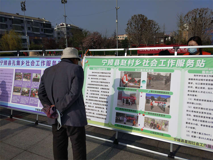 为深入贯彻落实习近平总书记关于社会工作的重要指示精神,宣传社会工作的专业优势,展示社会工作发展成果,提高社会工作的认知度和影响力,推动社会工作事业的发展,2022年3月底,宁陵县民政局联合郑州市金水区引航社会工作发展中心、宁陵县星阳社会工作服务中心开展了“五社联动聚合力,社工服务暖基层”2022年宁陵县社工周主题宣传活动。