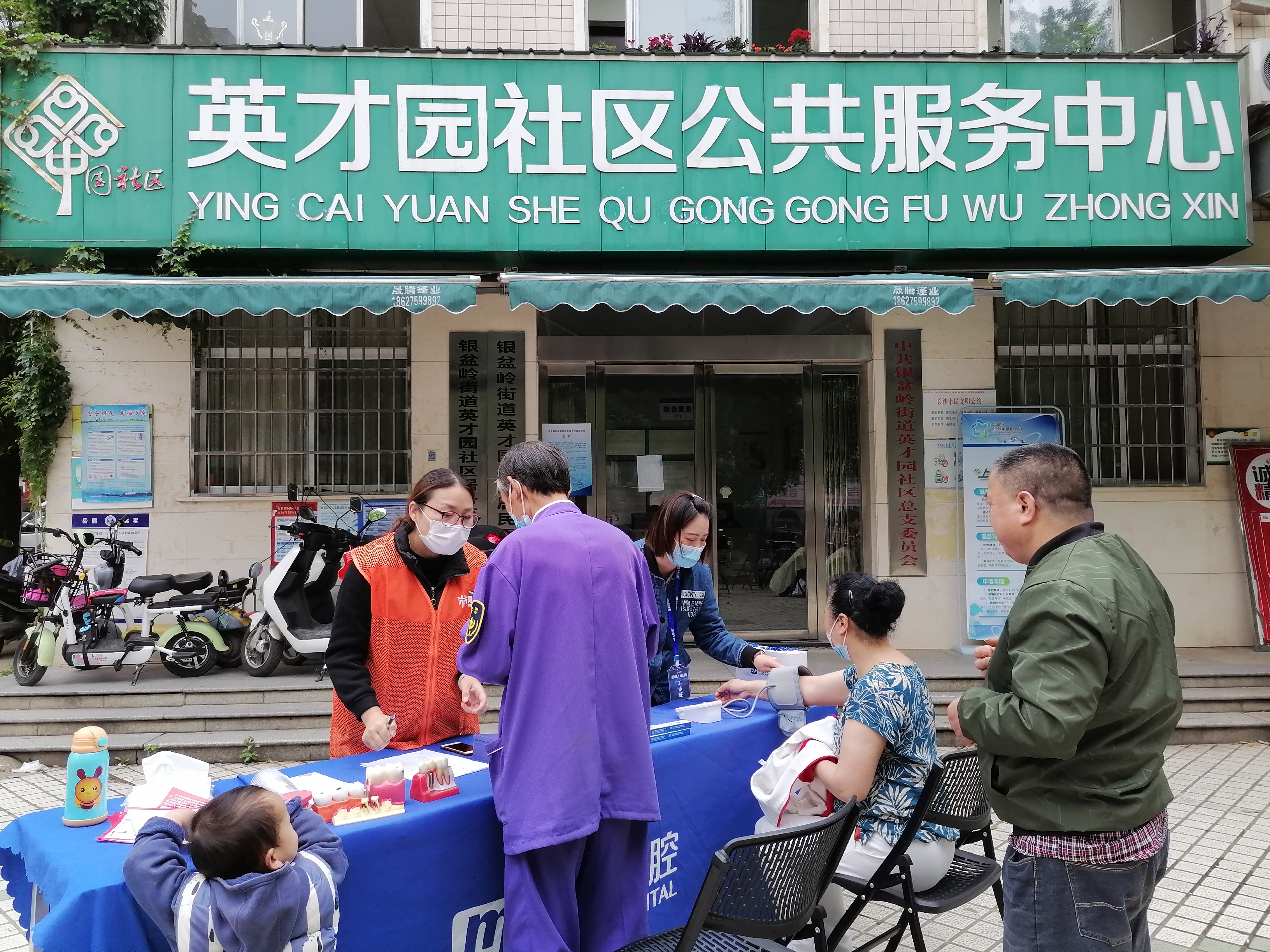 在义诊区内为社区居民免费进行测血压、血糖、口腔等一系列检测;核酸检测采集点,社区工作人员做好新冠病毒疫苗的有效性、安全性、接种必要性等知识的宣传,增加疫苗接种的知晓率和关注率,服务中心的医务人员给居民接种新冠疫苗加强针。