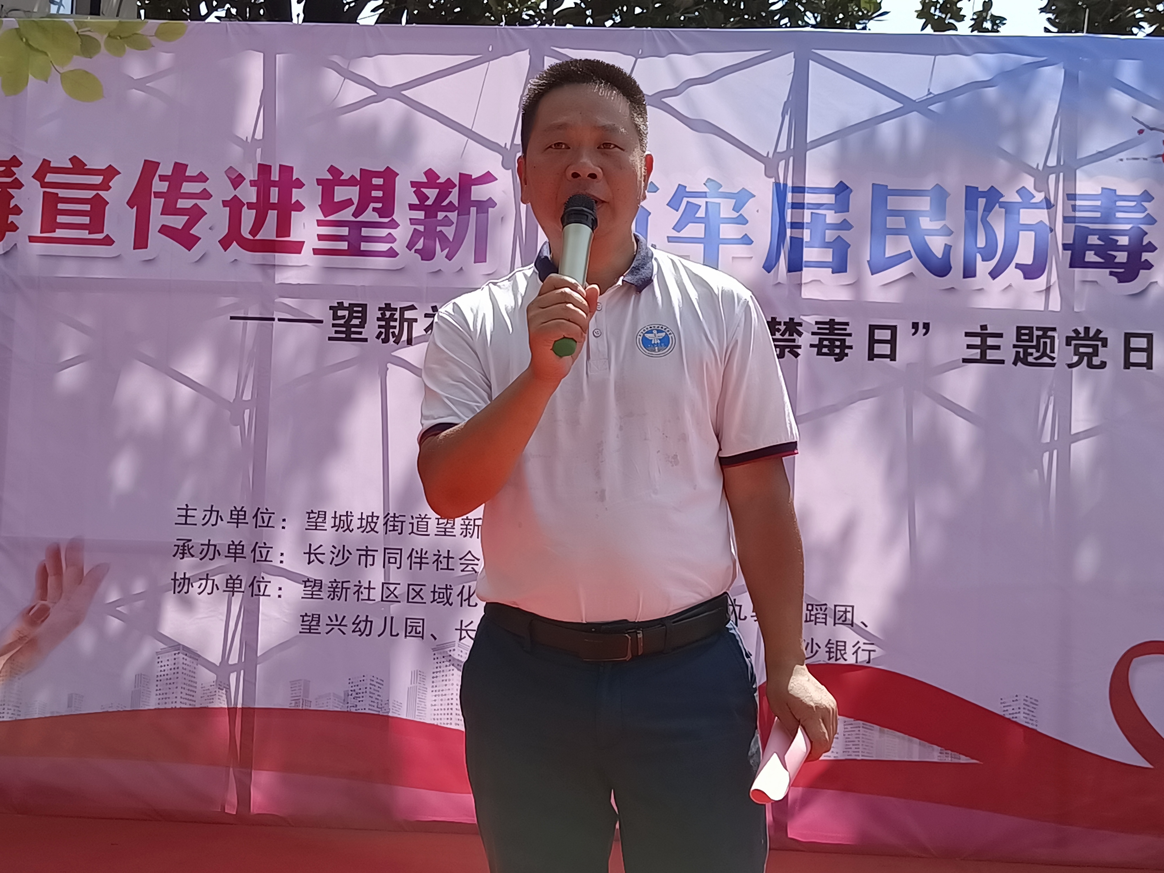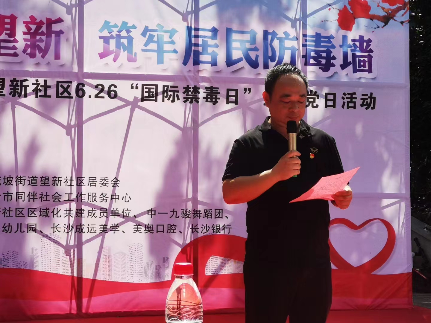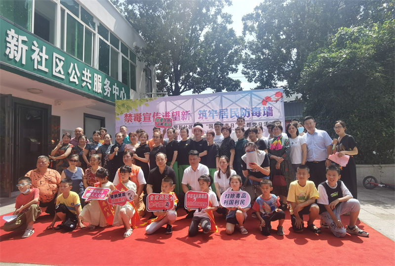 “珍爱生命,远离毒品,禁毒宣传进望新,筑牢居民防毒墙....”这是6月26日上午9:30在望新社区前坪开展的“6·26”国际禁毒日主题活动禁毒宣誓,社区党员、社区居民、青少年学生、禁毒志愿者近150人参与。