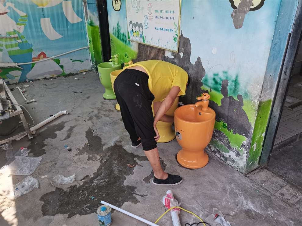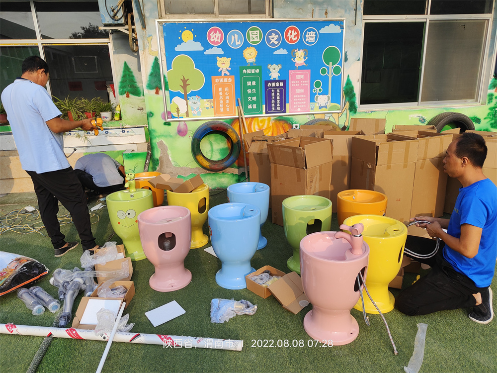8月2日开始,渭南益欣委托第三方装修公司为各幼儿园安装和修建洗手池。