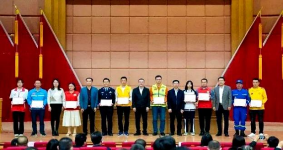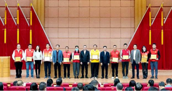 与会领导为2022年普宁市优秀志愿服务组织、优秀志愿服务项目和优秀志愿者颁奖并合影留念