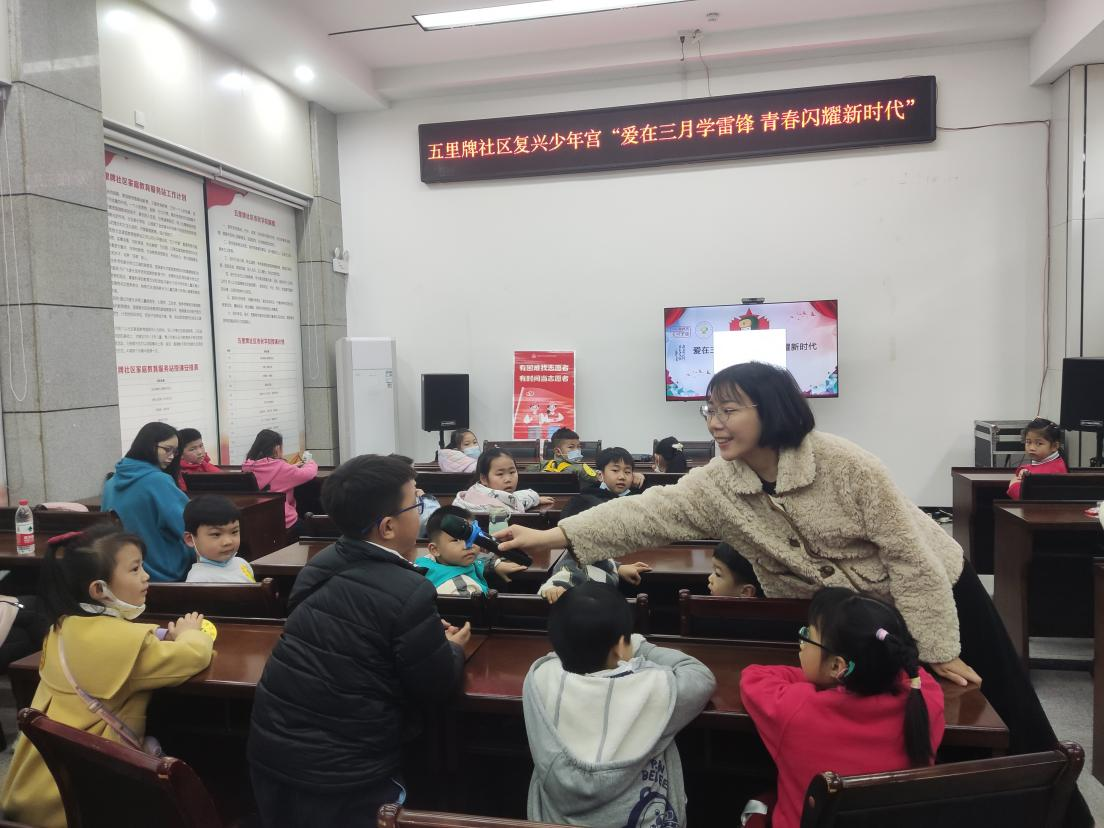 “学习雷锋好榜样,忠于革命忠于党……”一首耳熟能详的歌曲回响在五里牌社区复兴少年宫里。伴随着悦耳的音乐声,壹社区社工用图片、视频等形式为燕山小学2201班的孩子们讲述了雷锋同志为人民服务的感人事迹,分享了雷锋同志在学习中勇于发扬“挤”和“钻”的钉子精神。孩子们认真听讲,倍受鼓舞,纷纷表示“要向雷锋叔叔学习,从身边点滴小事做,做新时代新雷锋”。