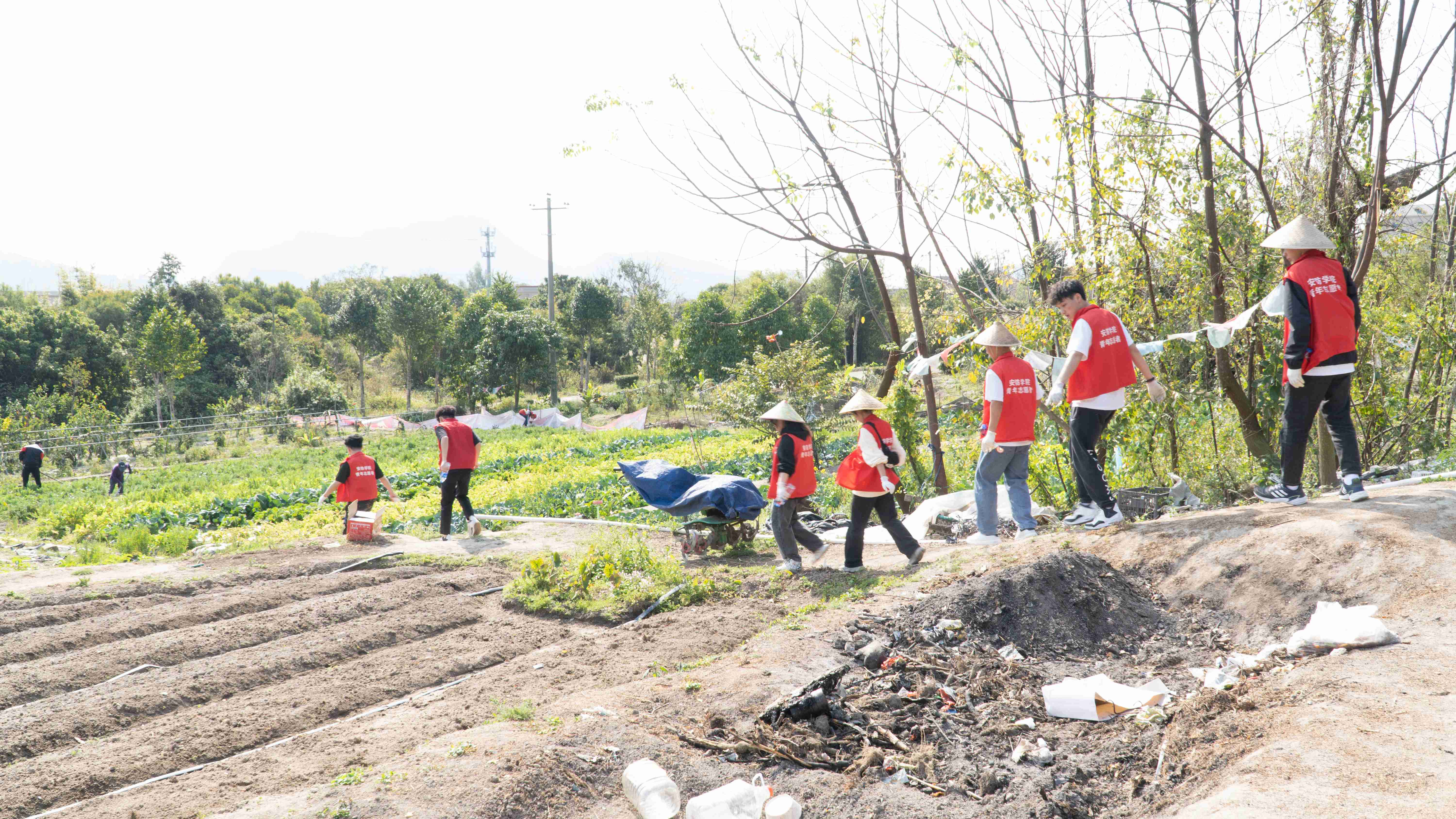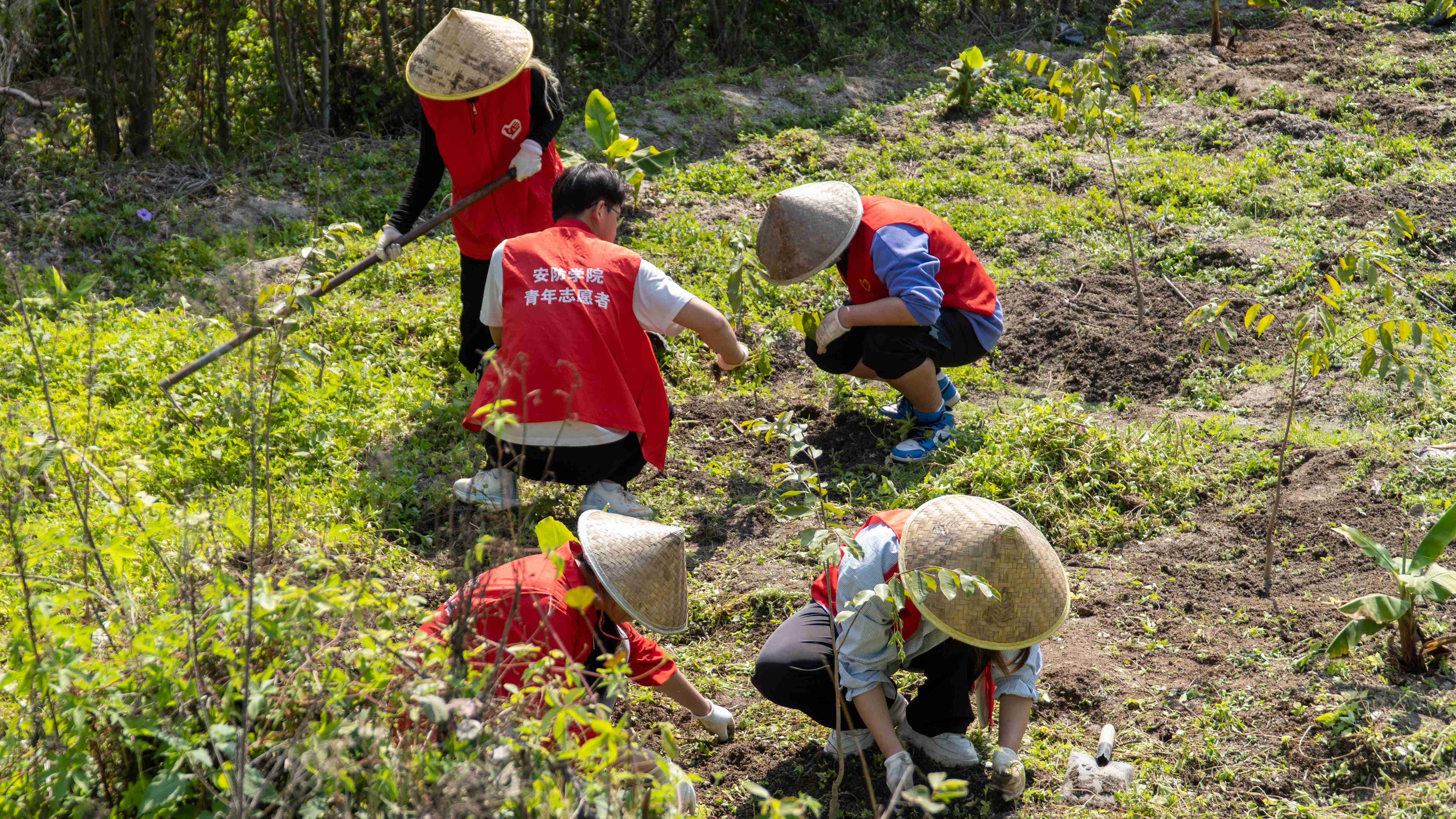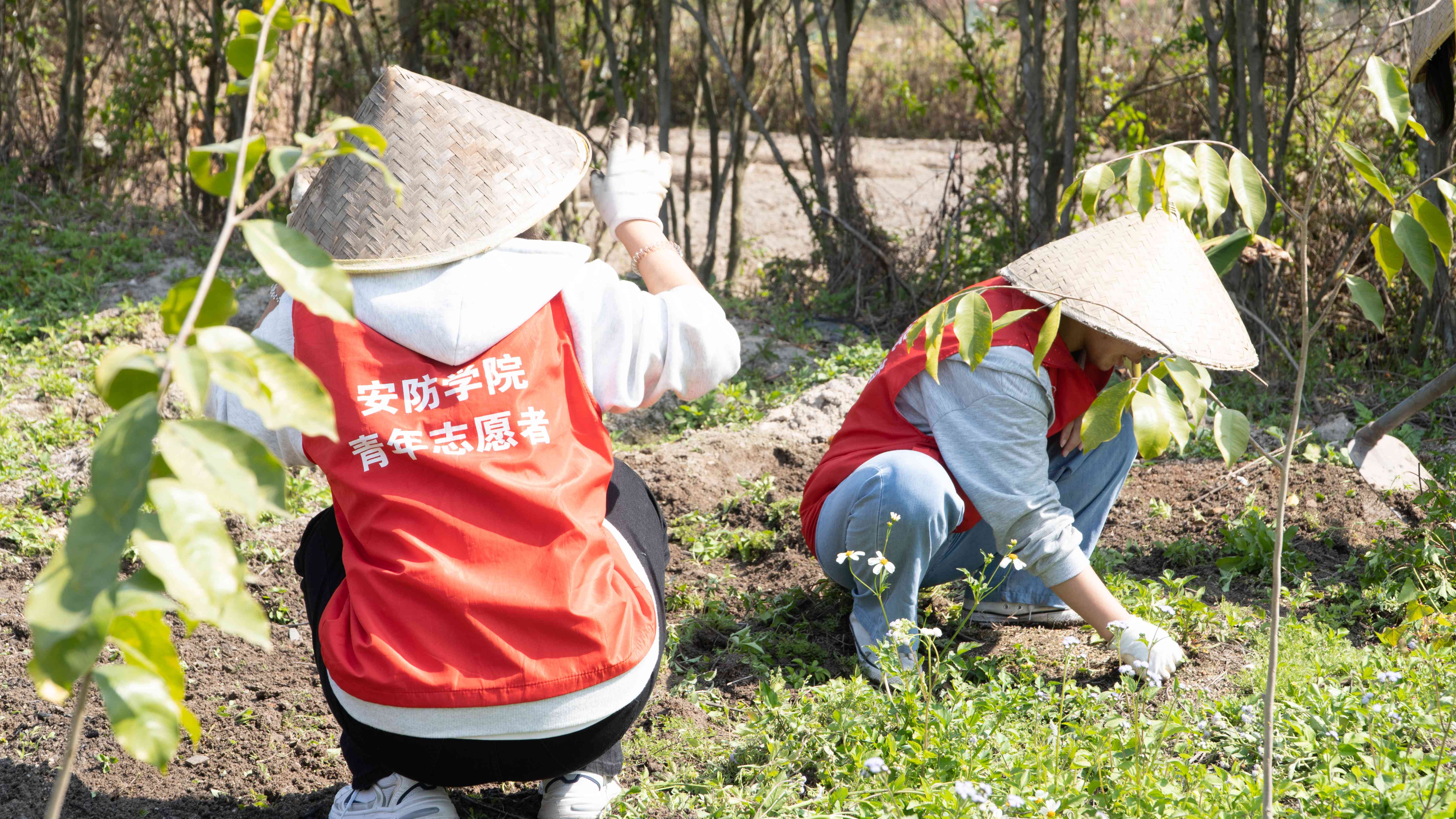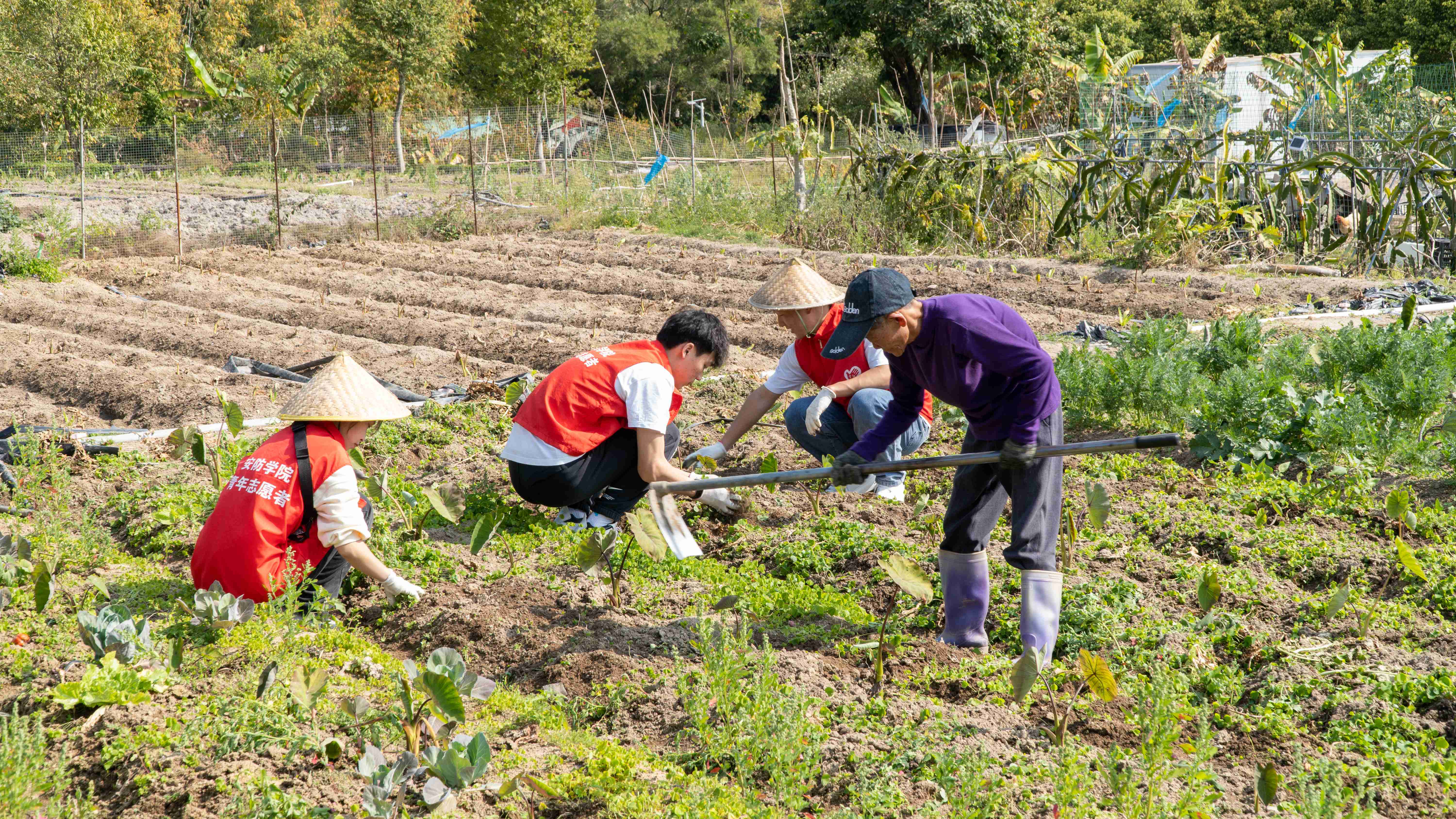 因春季众多杂草影响了的蔬菜生长和农禅院的美观,厦门市安防学校的大学生走进铜钵岩寺宝库农禅院爱心基地。3月12日一早,在带队廖壘鑫老师的带领下,安防学校25名大学生对农禅院里蔬菜基地进行了一次彻底地除杂草活动。