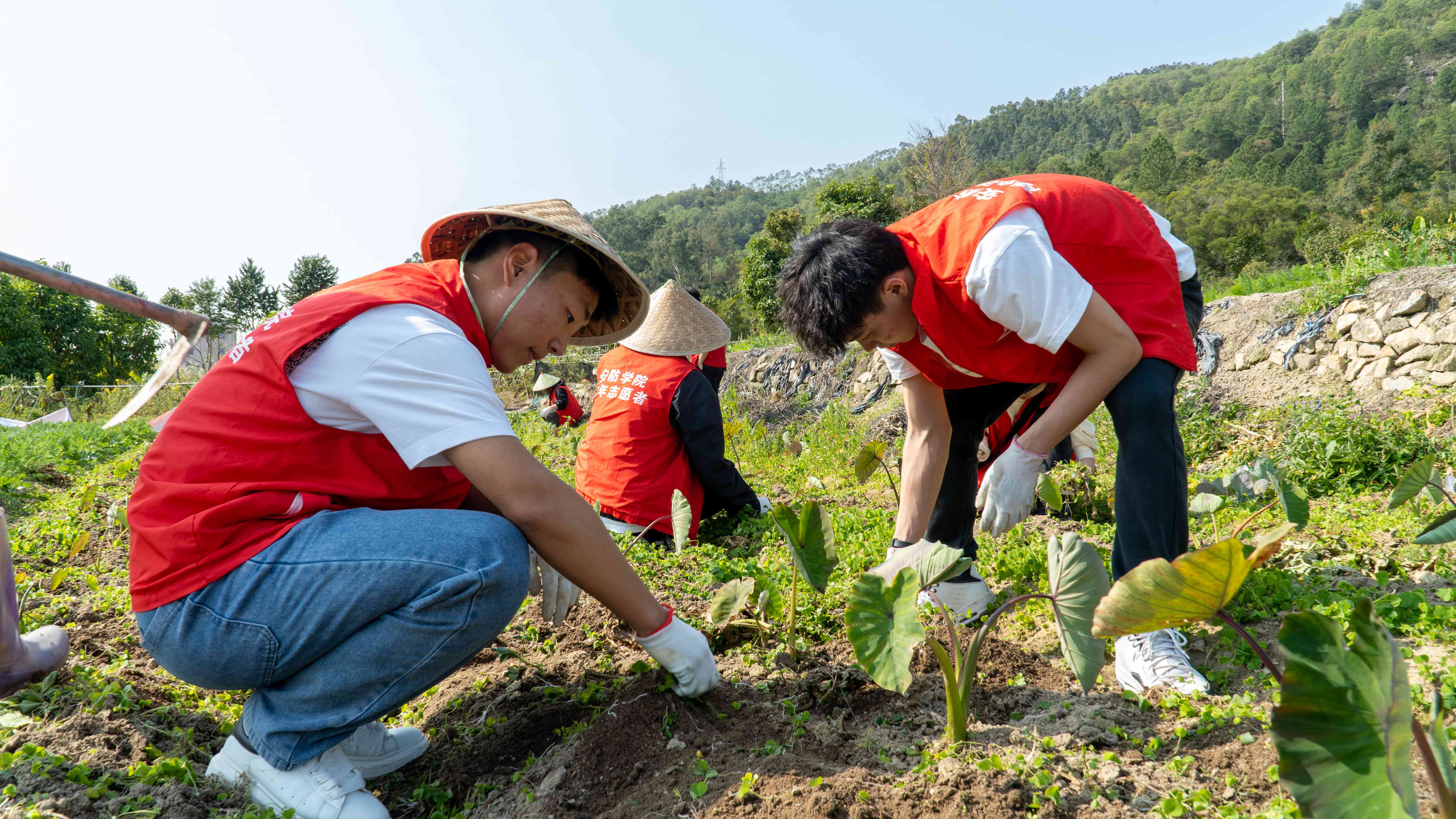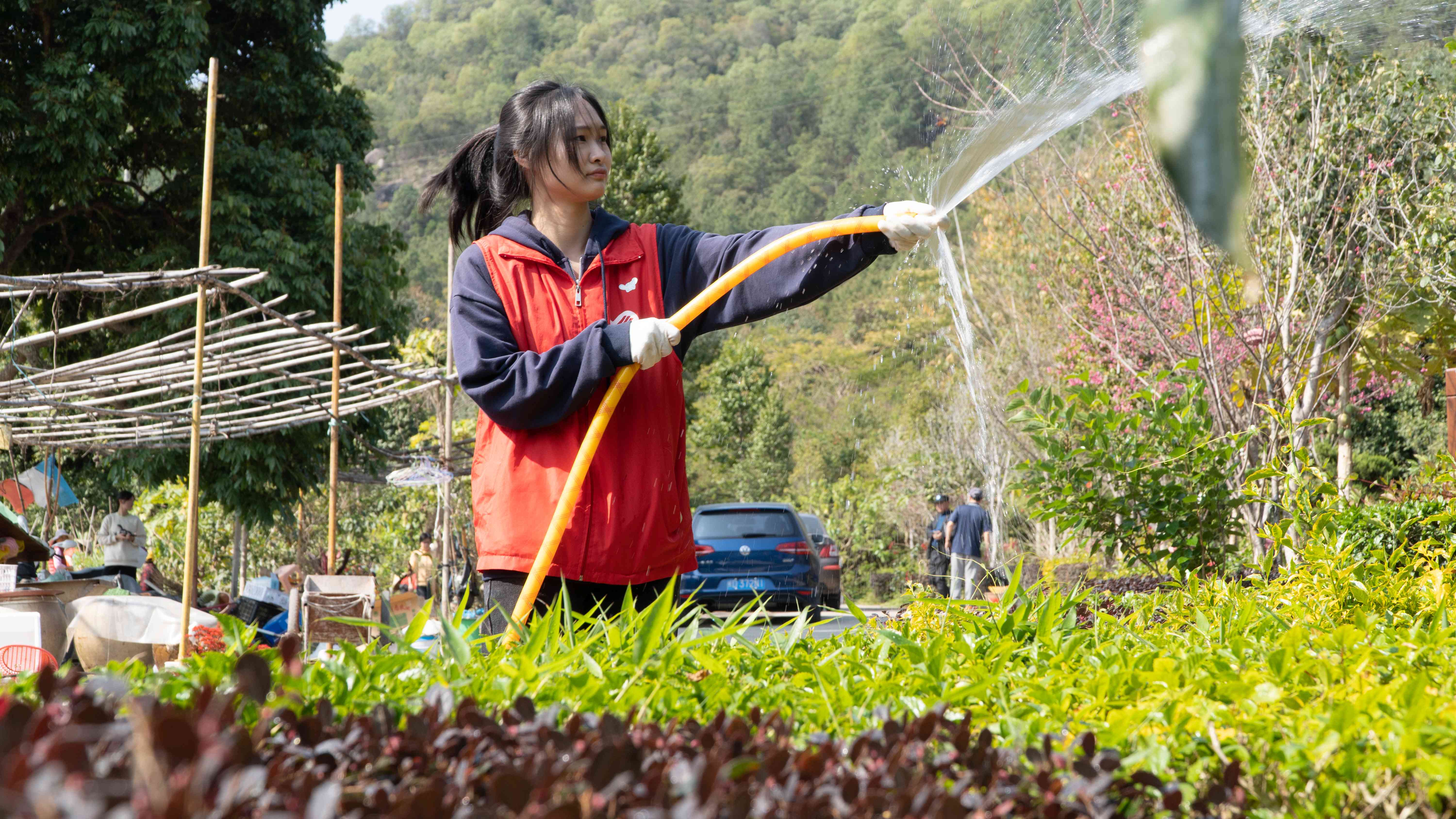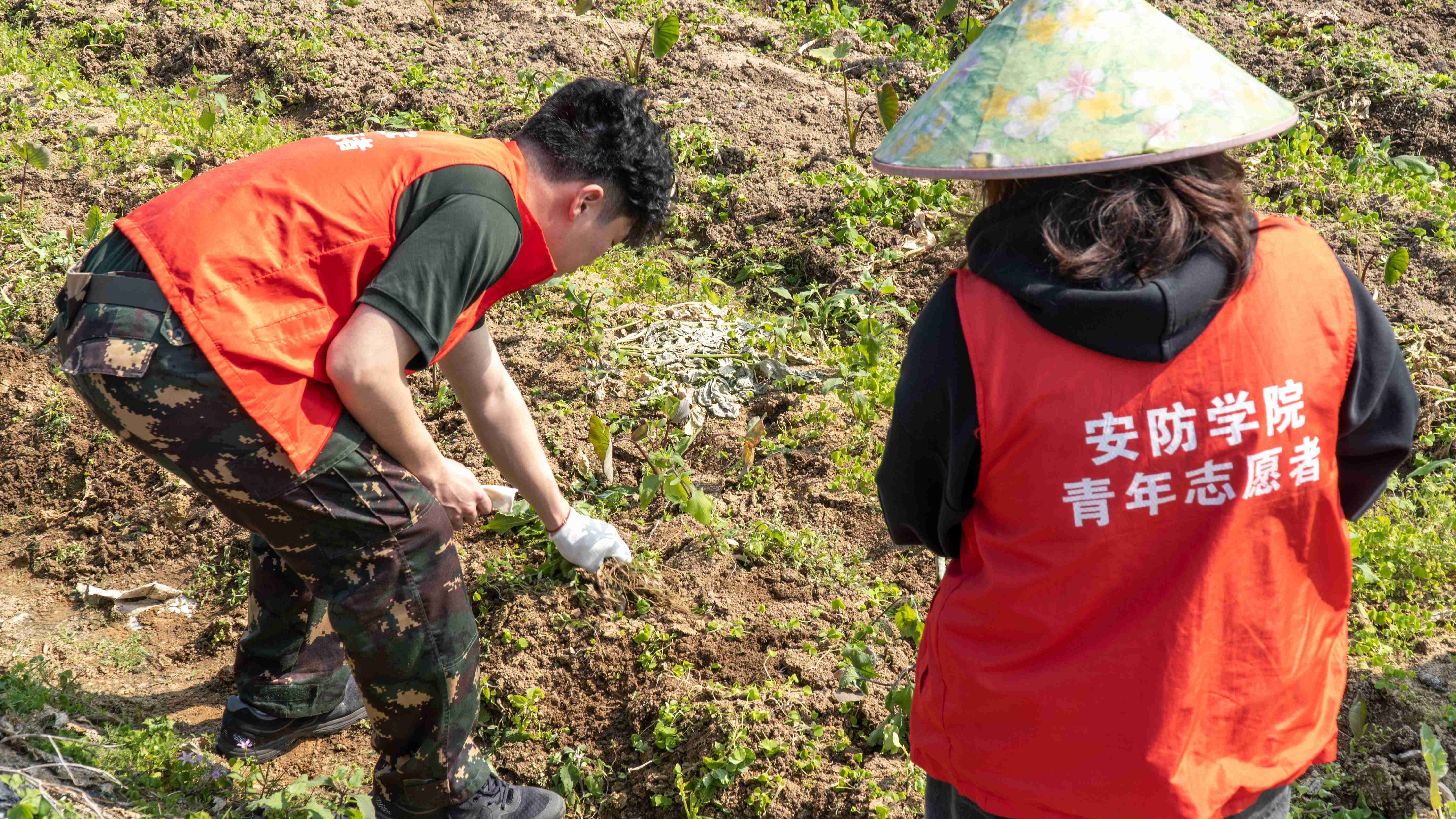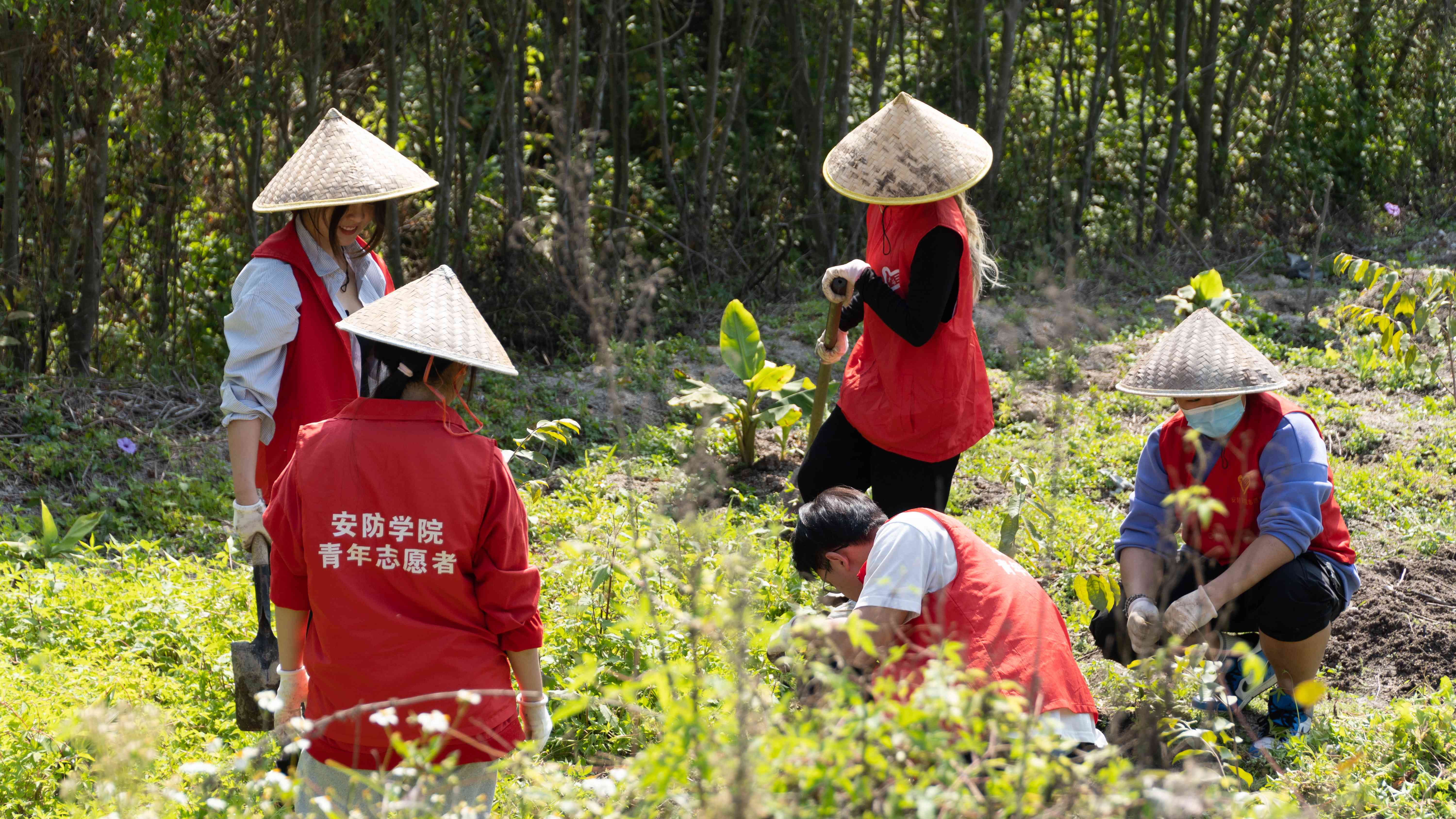 因春季众多杂草影响了的蔬菜生长和农禅院的美观,厦门市安防学校的大学生走进铜钵岩寺宝库农禅院爱心基地。3月12日一早,在带队廖壘鑫老师的带领下,安防学校25名大学生对农禅院里蔬菜基地进行了一次彻底地除杂草活动。