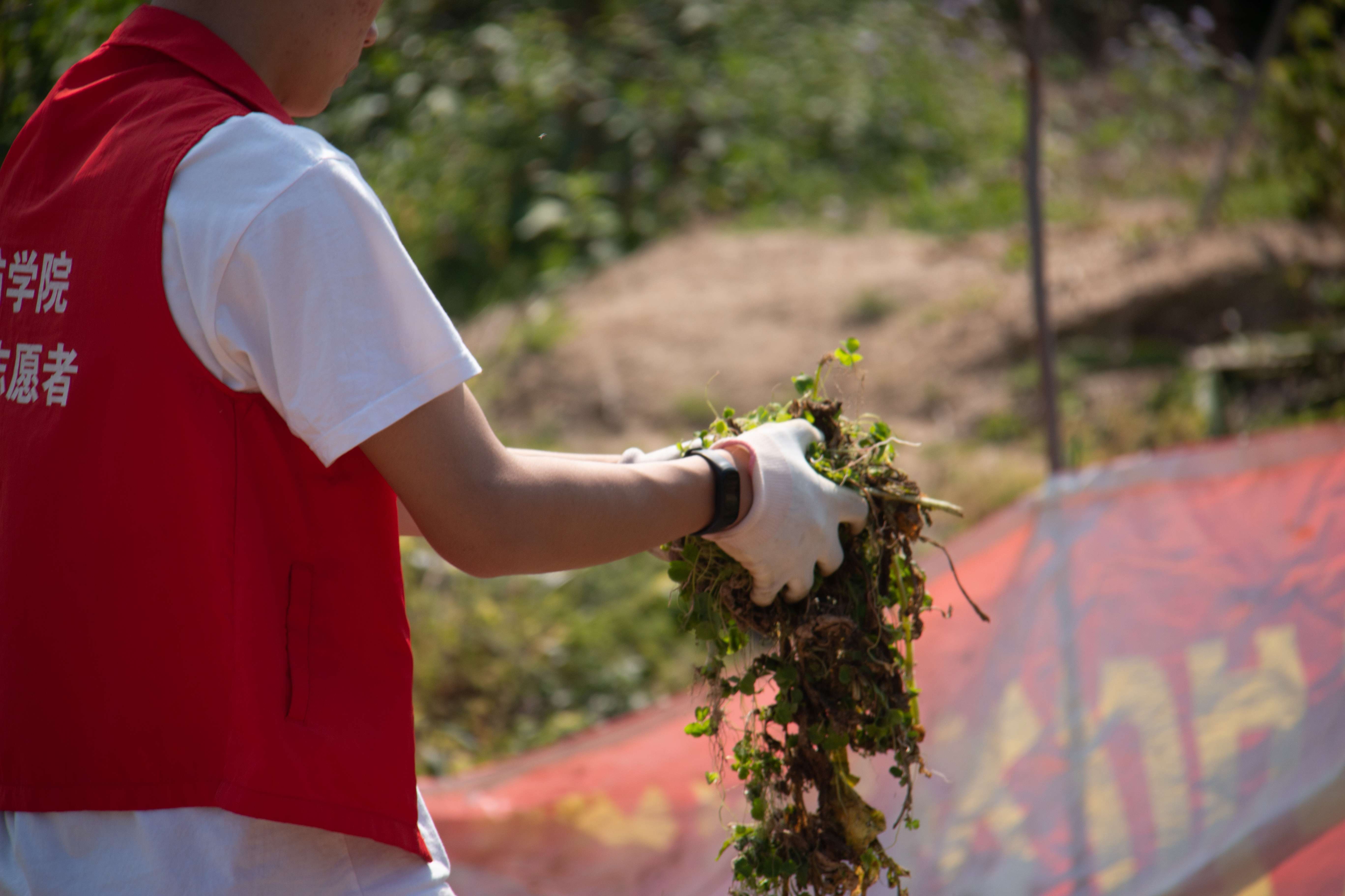 虽是春季,炎炎烈日炙烤大地,太阳丝毫不因大家的汗水而有所收敛。杂草较多,清除的工作量很大,但并未影响大家的热情,同学们分工明确、团结协作,有的铲杂草、有的负责清运、有的直接用手拔。经过大家的辛勤劳动,所有杂草全部清理干净。一整天只能除一半左右,但是被除草过的爱心蔬菜基地容貌整体焕然一新。