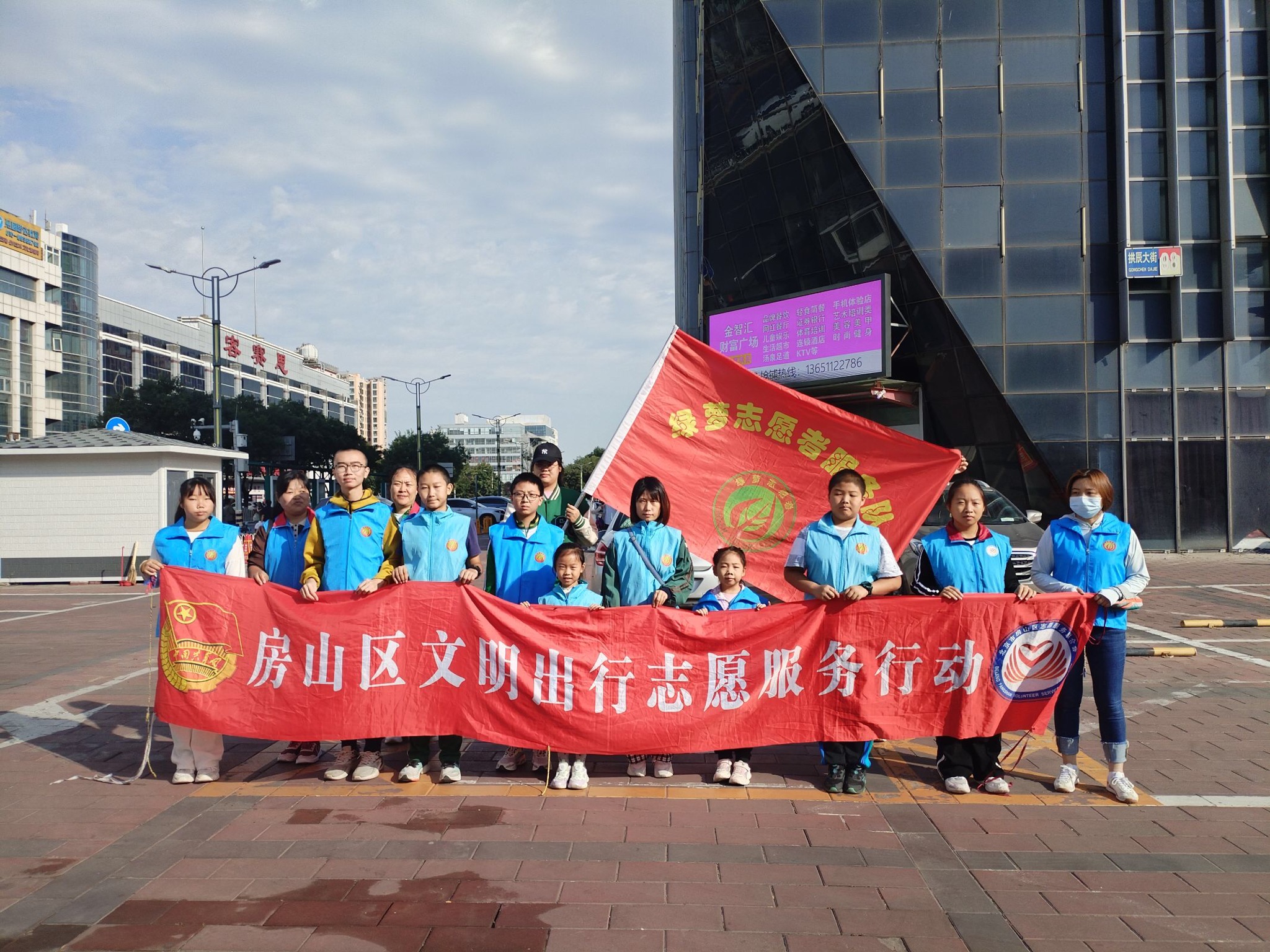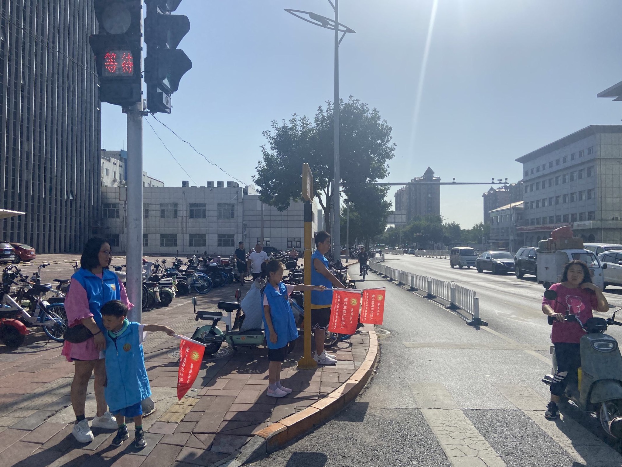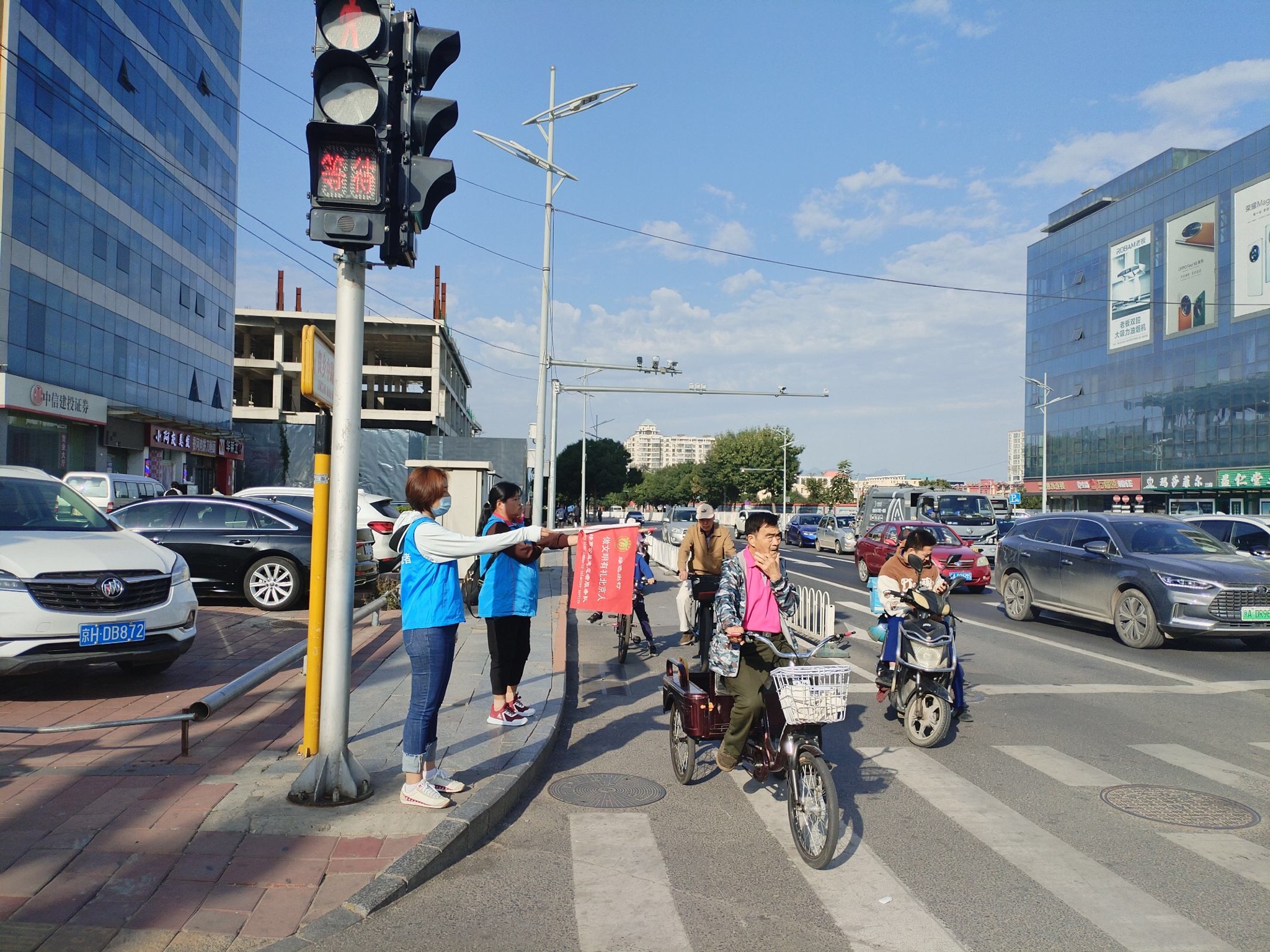 2023年9月29日上午,绿萝志愿服务队“礼让斑马线”志愿活动在良乡大角红绿灯展开。