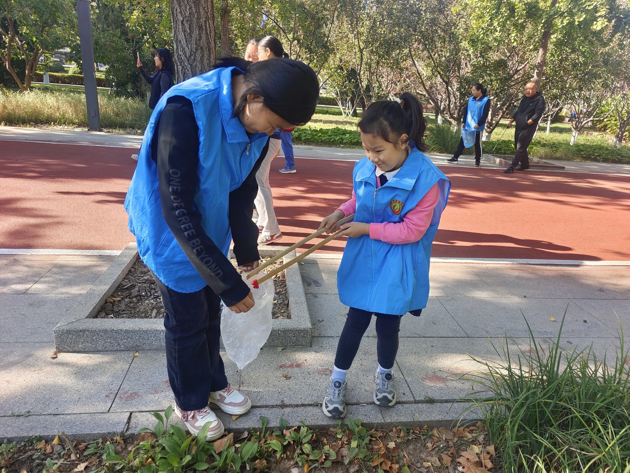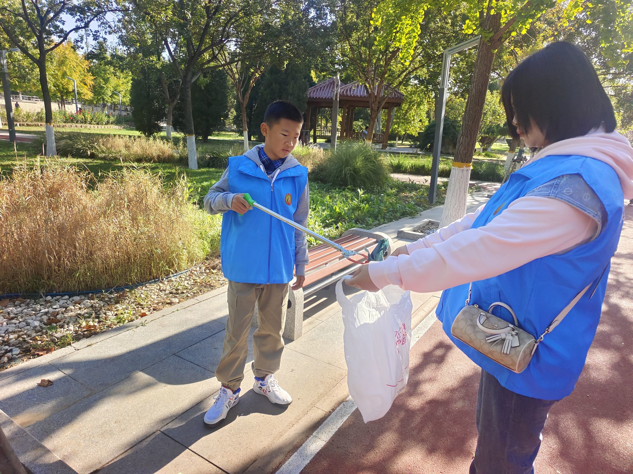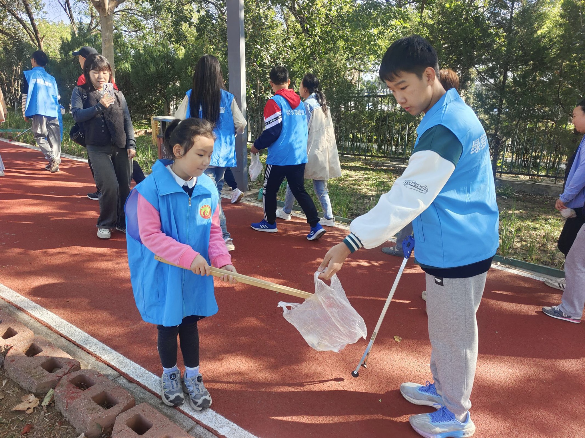 活动中,志愿者们身穿蓝色马甲,手持夹子和垃圾袋等工具,充分发挥不怕脏、不怕累的优良作风和团结合作的良好精神风貌,分工协作细致认真,重点对公园,道路周边、绿化带的垃圾进行清理,经过全体志愿者们的共同努力,公园的面貌焕然一新。