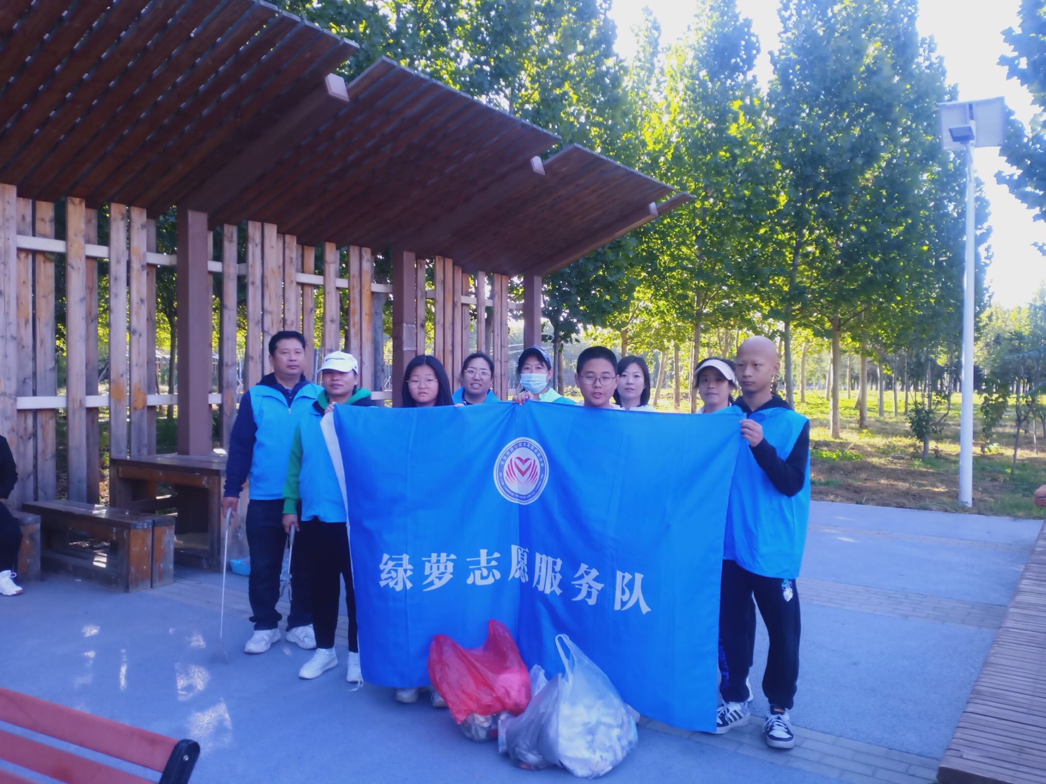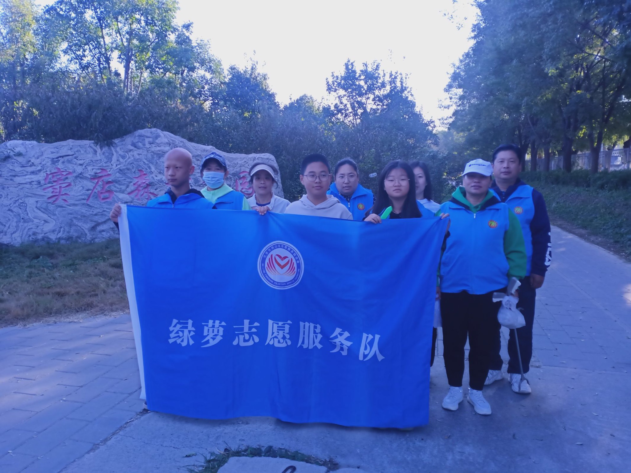 2023年10月15日,绿萝志愿服务队的志愿者们在窦店森林公园集合,开展“爱护环境是文明的体现”户外清洁活动。