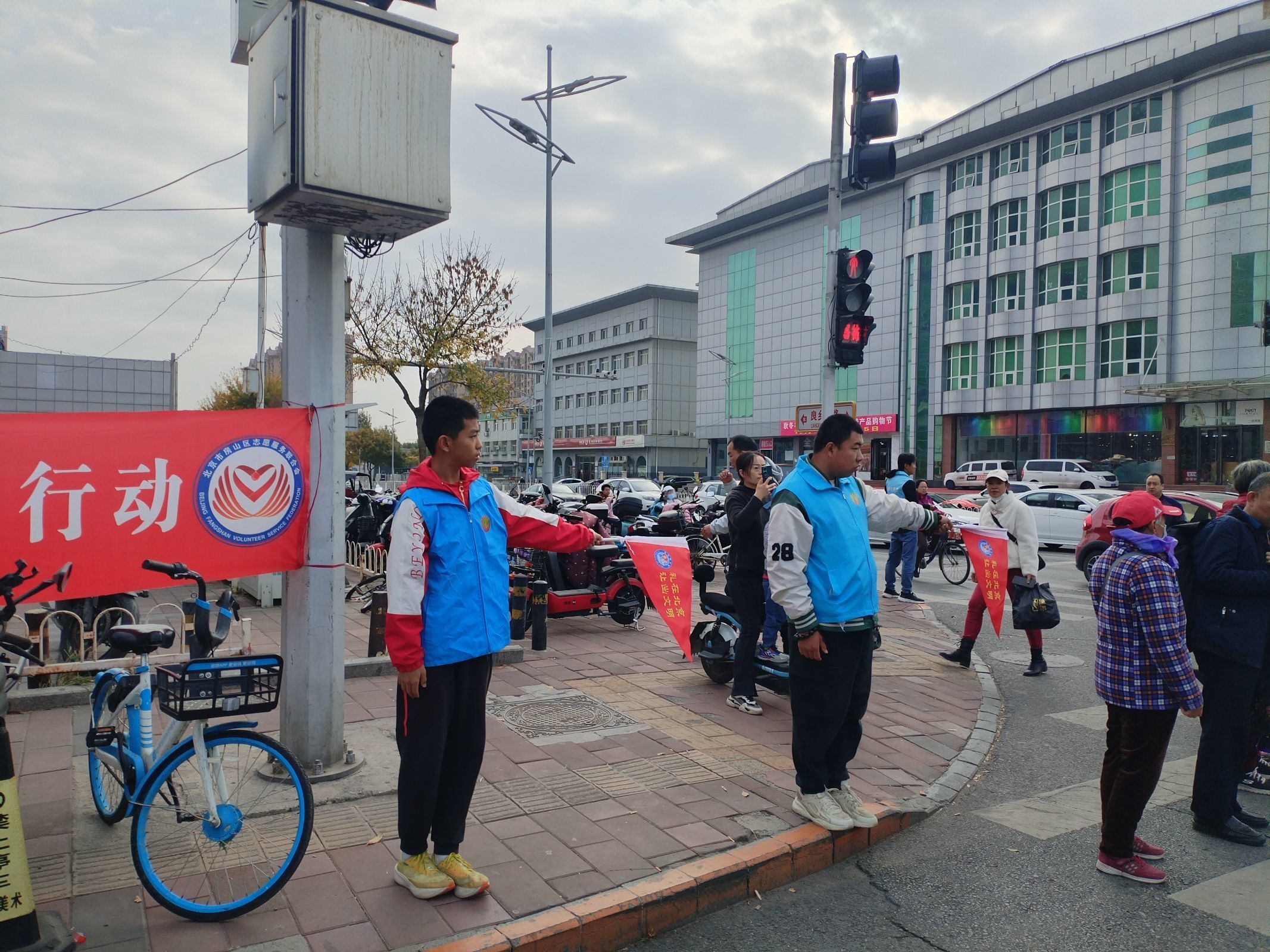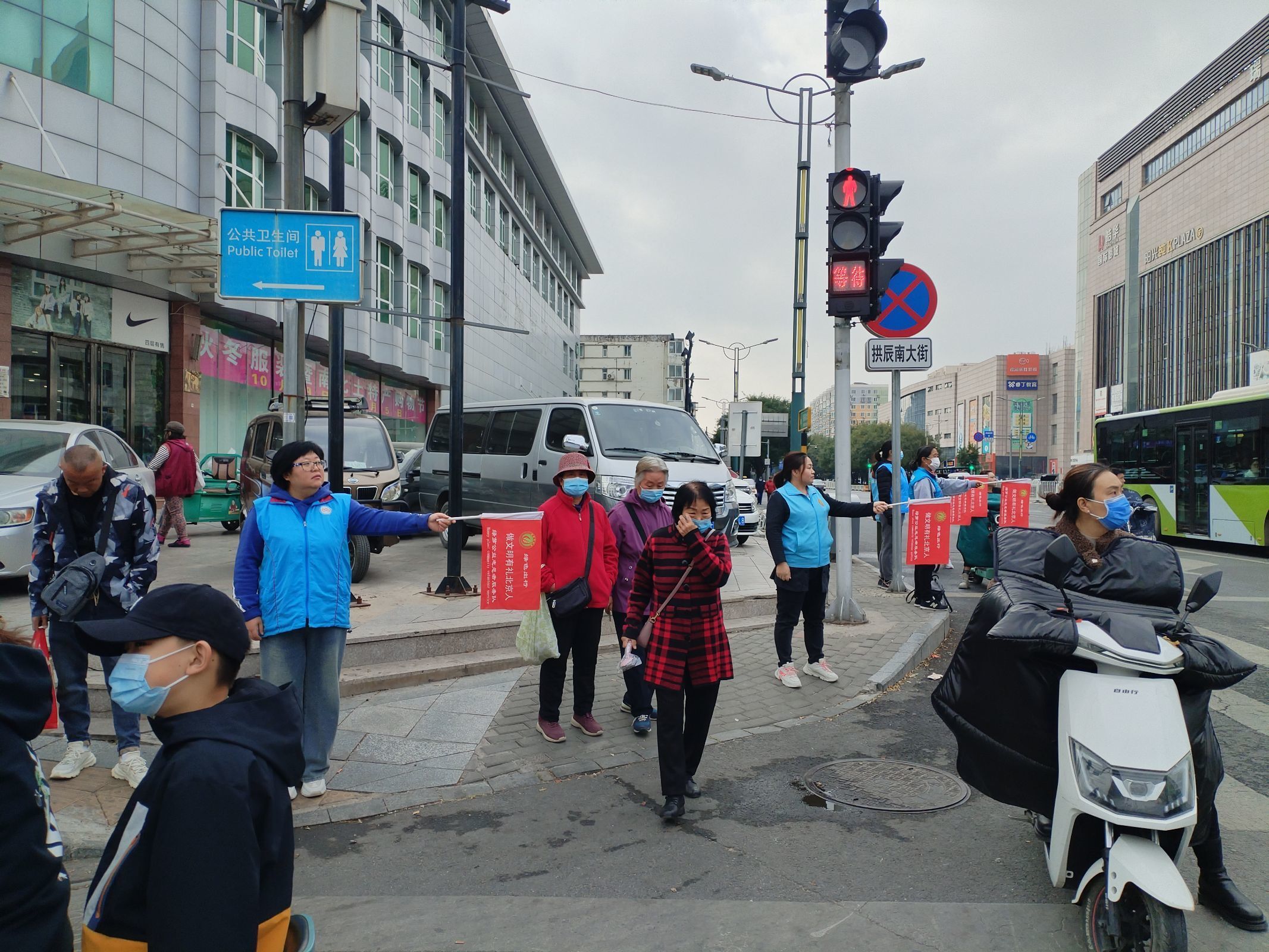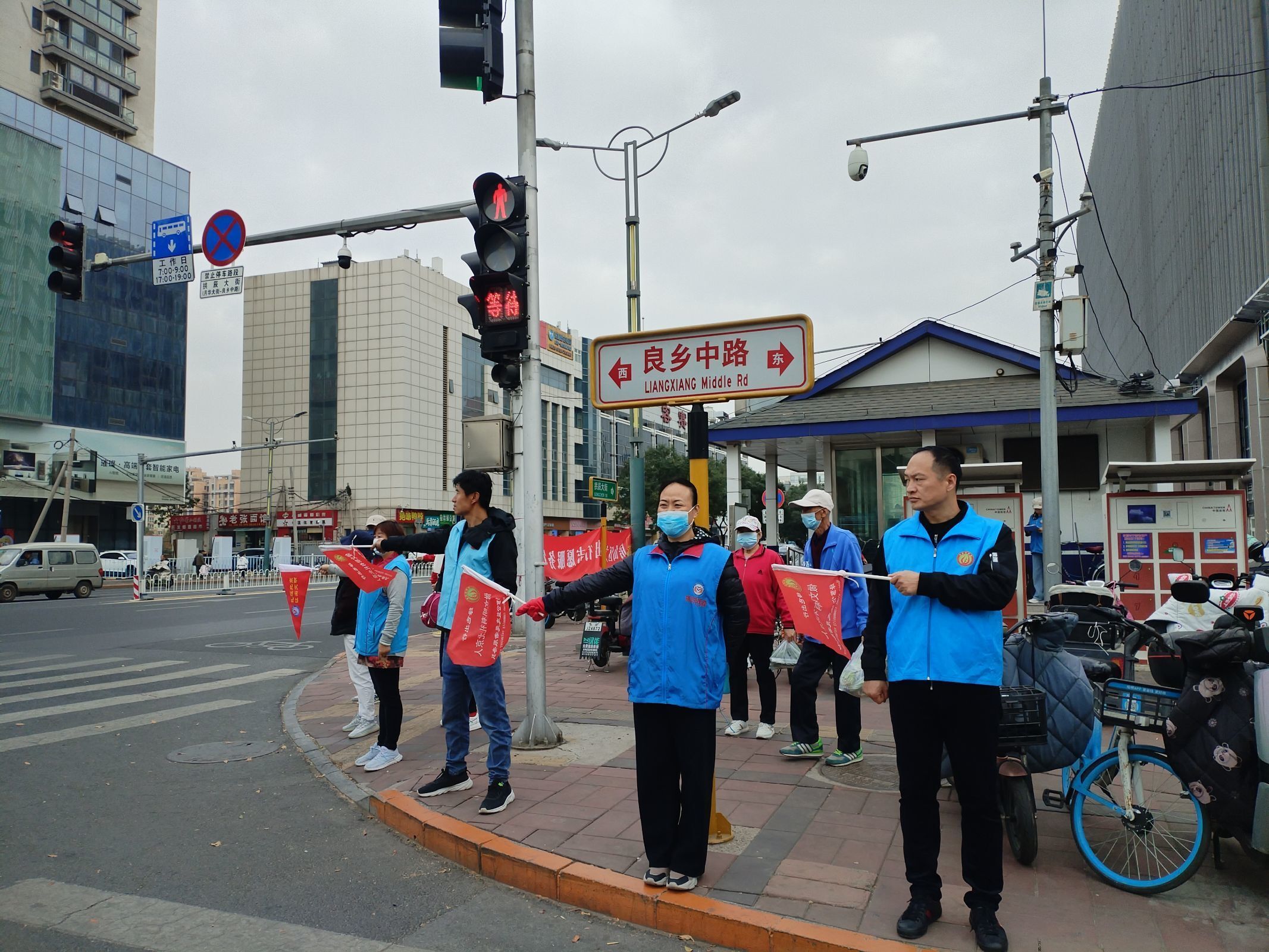 秋风瑟瑟,志愿者们站姿挺拔的矗立在斑马线前,手持指挥旗,整齐划一的指挥动作,引导过往车辆礼让行人,积极营造安全畅通、和谐有序的文明交通环境。 志愿者们认真对超越斑马线的路人进行规范,对不遵守秩序的行人进行劝阻。对遵守交通规则的行人投去灿烂的微笑。