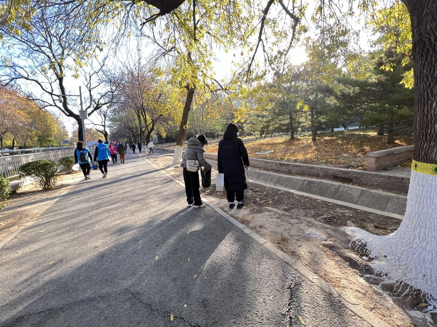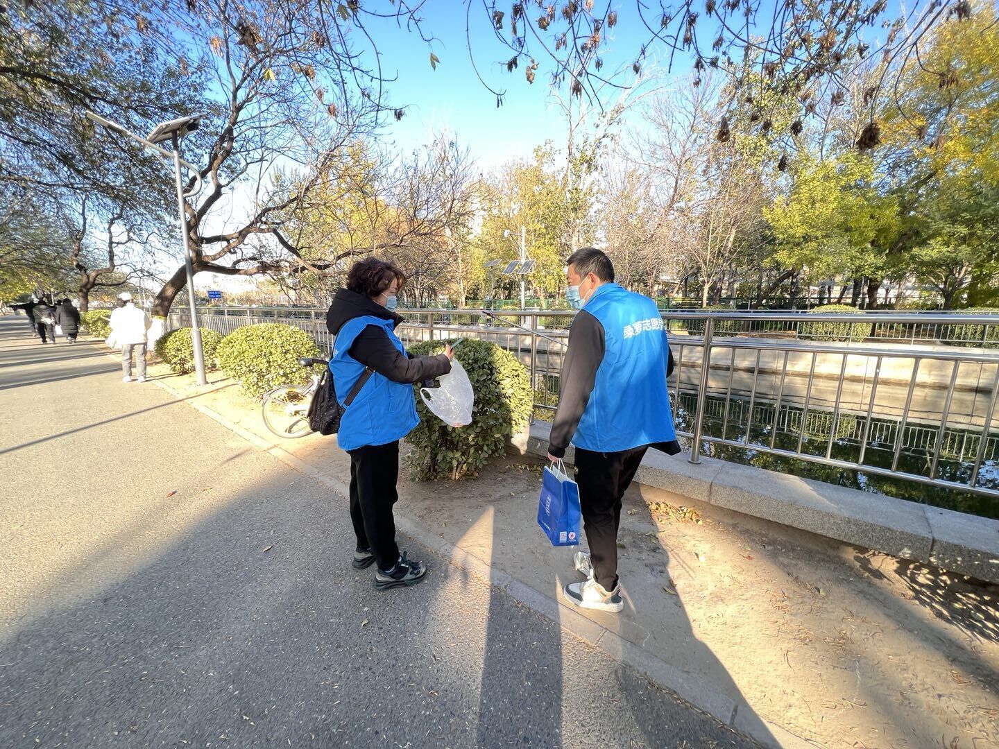 2023年11月18日上午,绿萝志愿者团队在牡丹园地铁口集合,参加爱护环境,户外清洁活动。