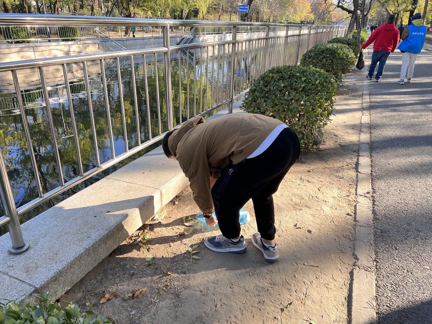 活动开始,在领队的带领下,大家分工合作,配合默契。对现场的每个角落都不放过,仔细查看,像河道边上、绿化带、道路两侧,都有志愿者的身影。大家将捡到的杂物放到垃圾袋中。虽然天气很冷,但大家的热情不减。经过一上午的劳动,使周围的环境焕然一新。