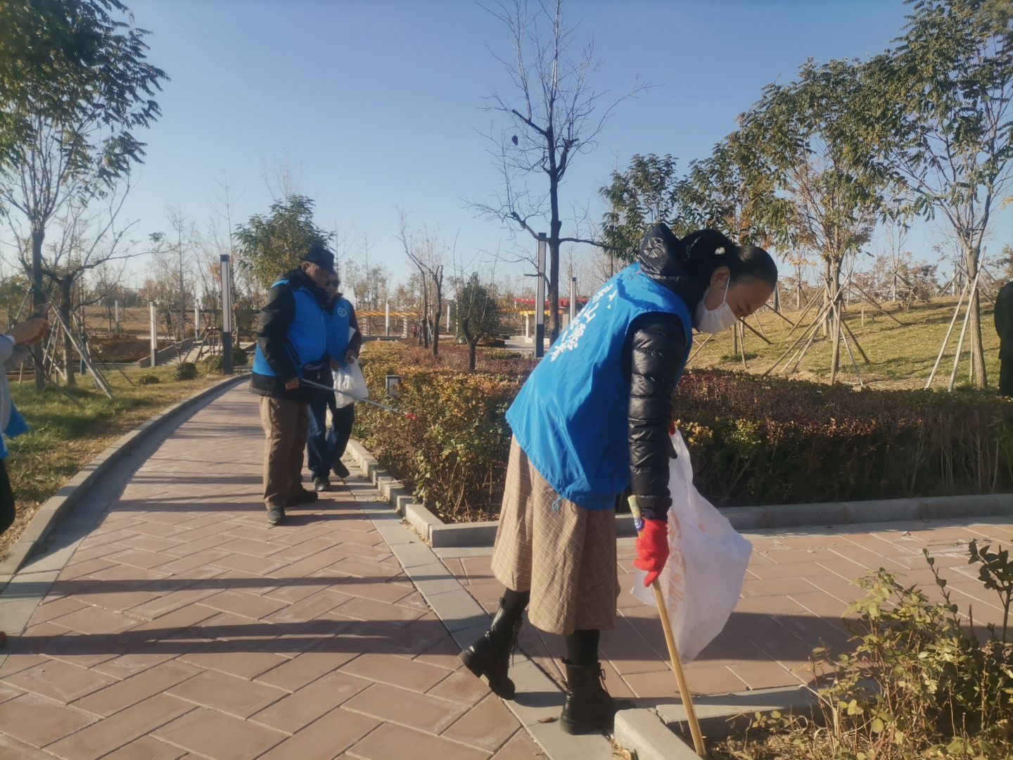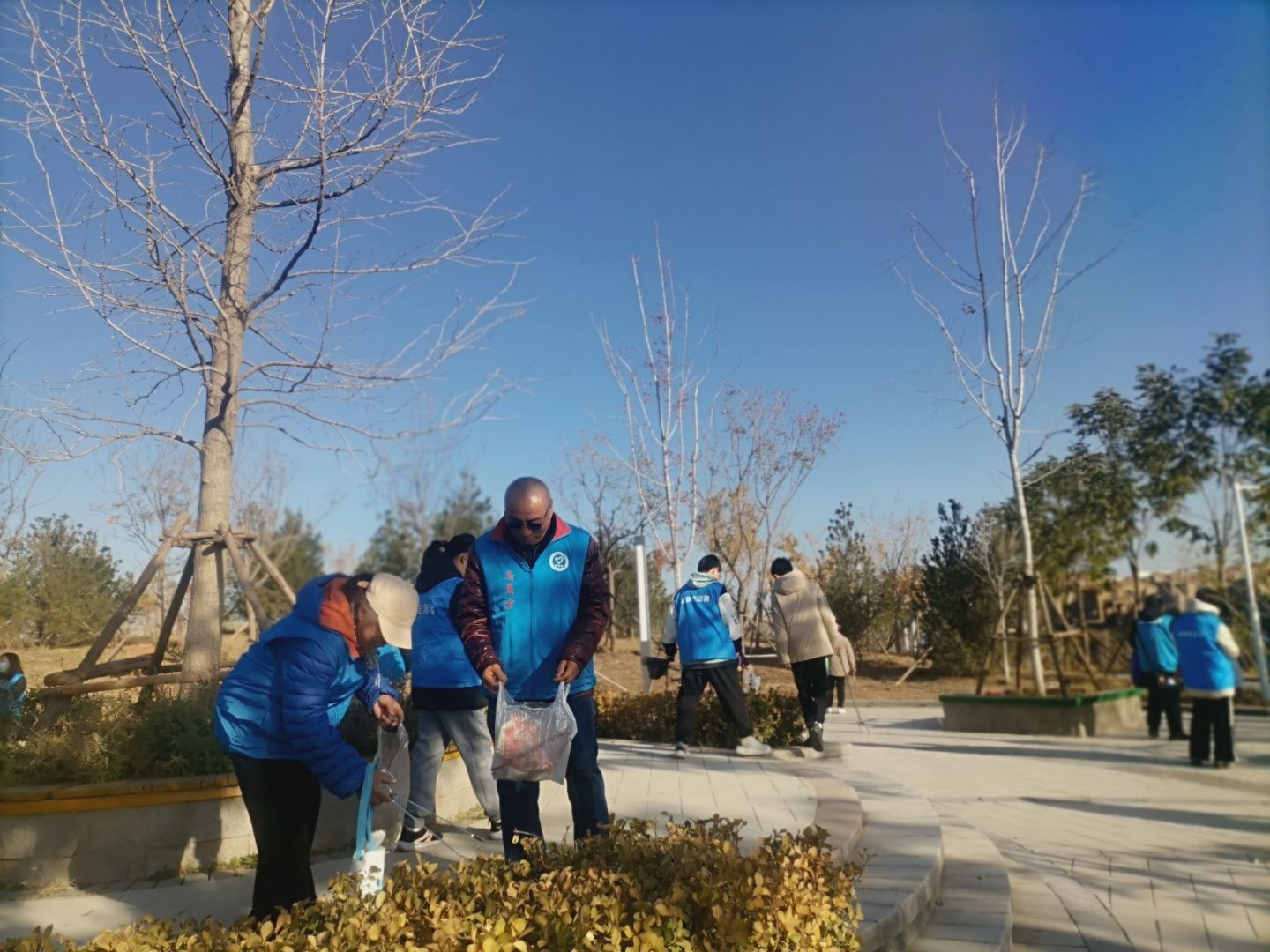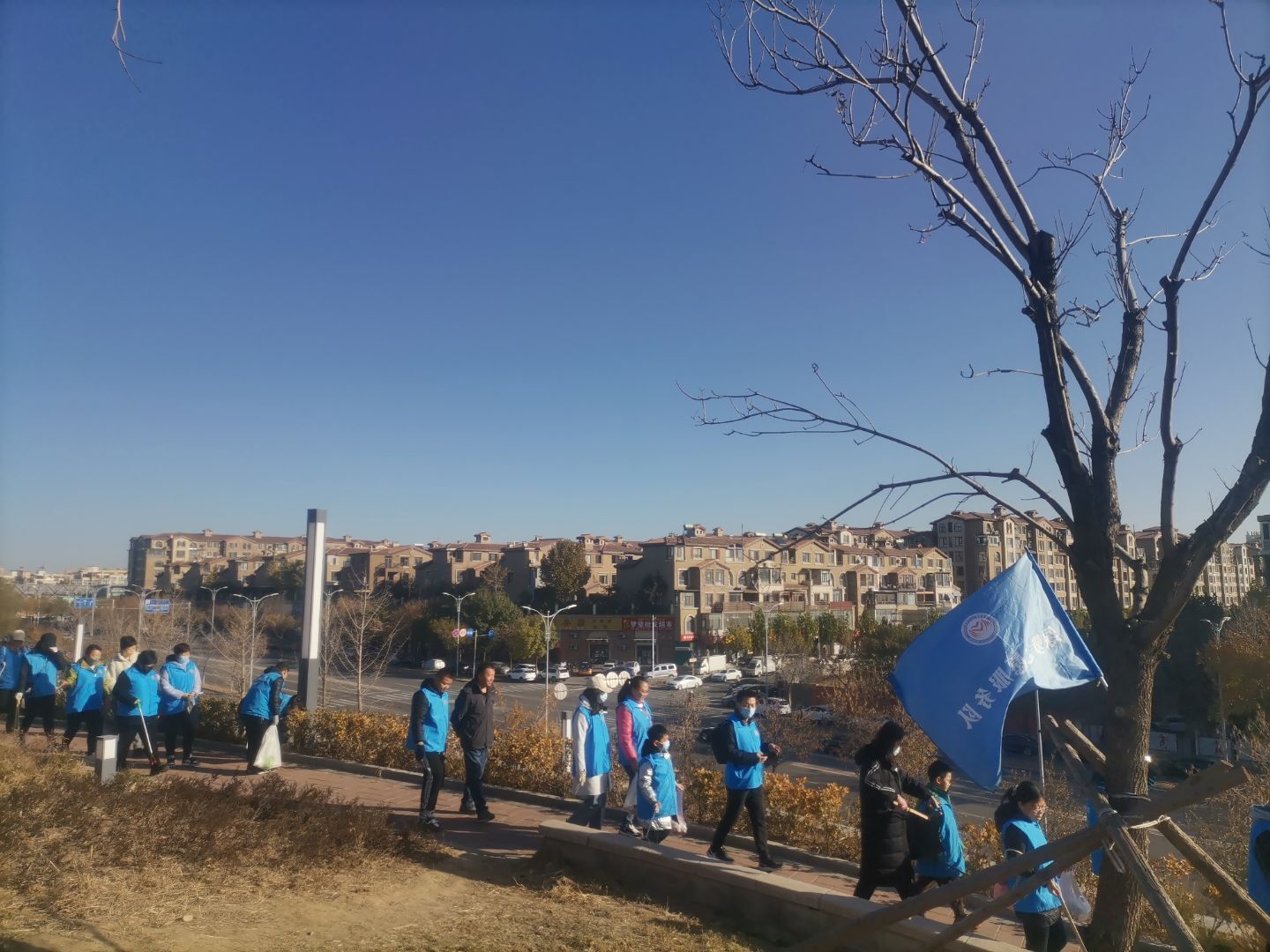 11月的天冷的可怕,但志愿者们不惧寒冷和劳累,坚持穿戴着统一的蓝色志愿服务,带着工具,早早的来到集合地点。他们沿途随手捡起垃圾,向游人讲解节水和护水的必要性引导自觉节水的社会行为,保护环境,充分发扬了不怕苦,不怕累的精神,个个干劲十足。