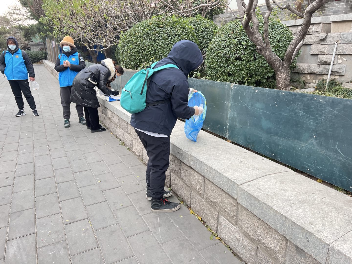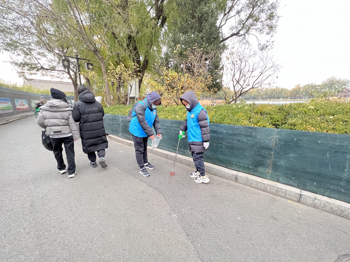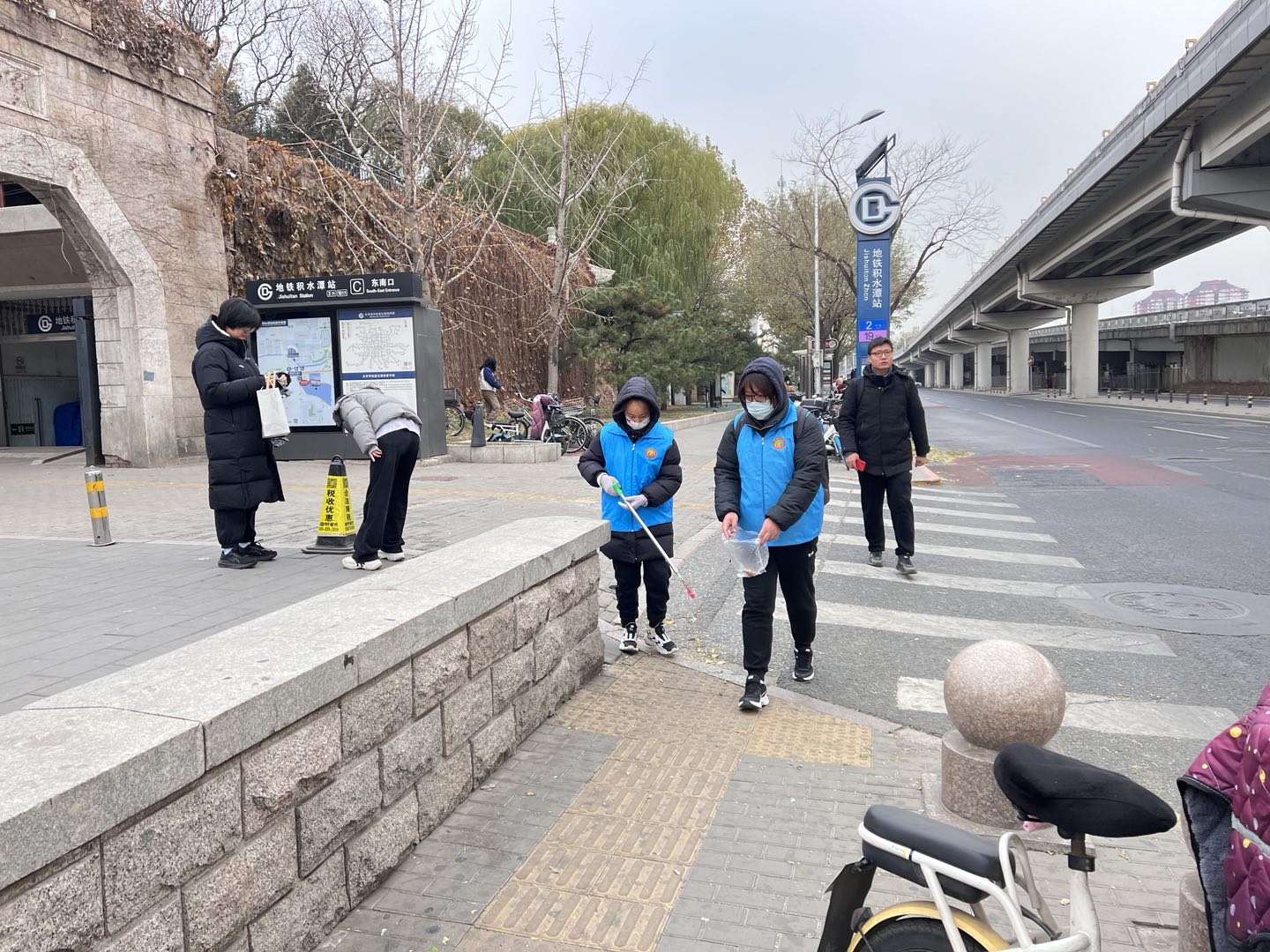 2023年11月25日上午,绿萝志愿者团队在积水潭地铁口集合,参加户外清洁活动--后海河道管家。