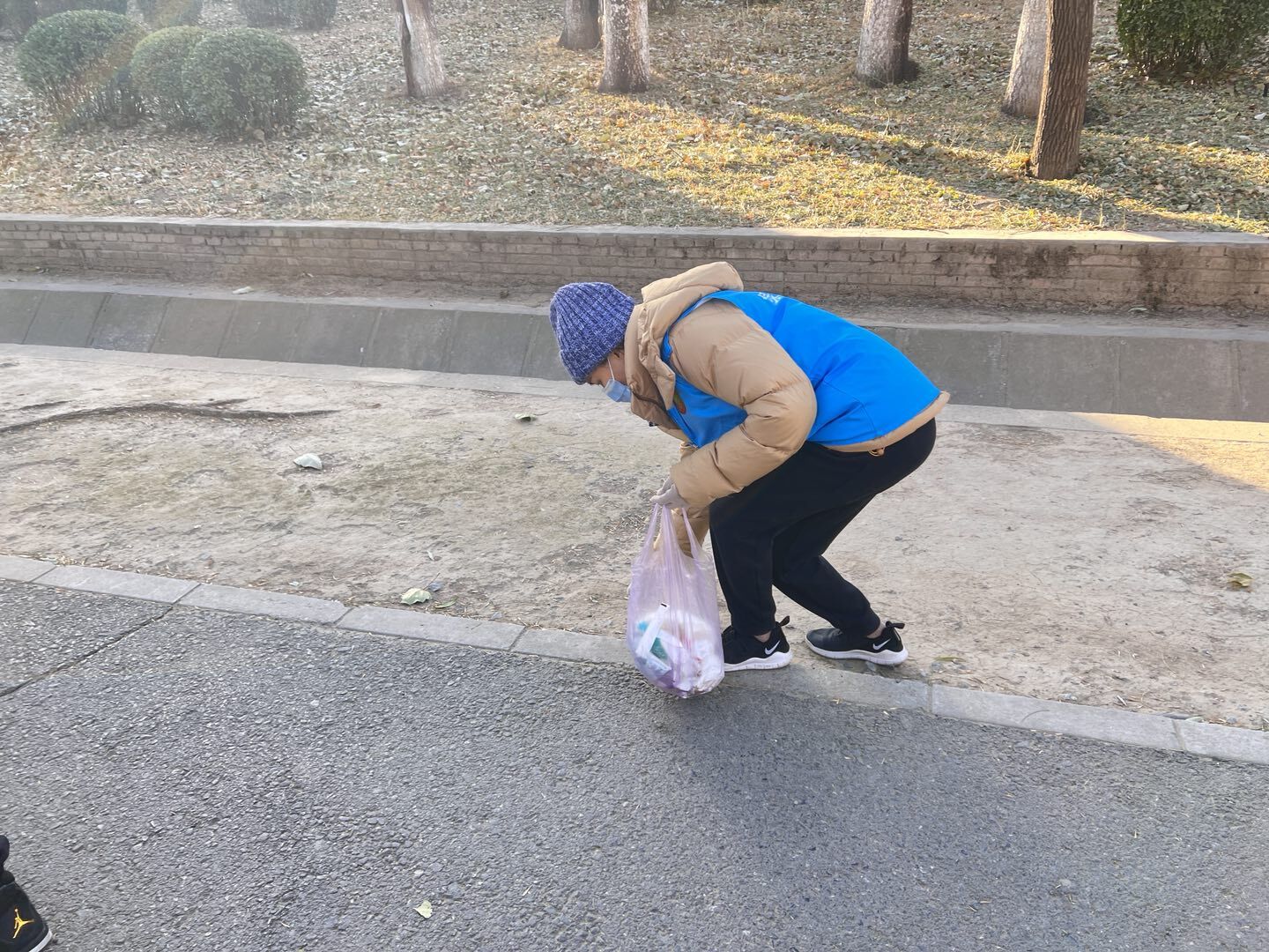 活动开始,大家不惧严寒,热情高涨。在领队的带领下,自由组合,立即对现场的每个角落进行查看。绿化带中、河道边上、道路两侧,都有志愿者的身影。大家不怕苦、不怕累把捡拾起来的垃圾进行分类放到垃圾袋中。经过2个小时辛勤劳动,活动区域的卫生环境焕然一新,志愿者们的脸上洋溢着开心的笑容。