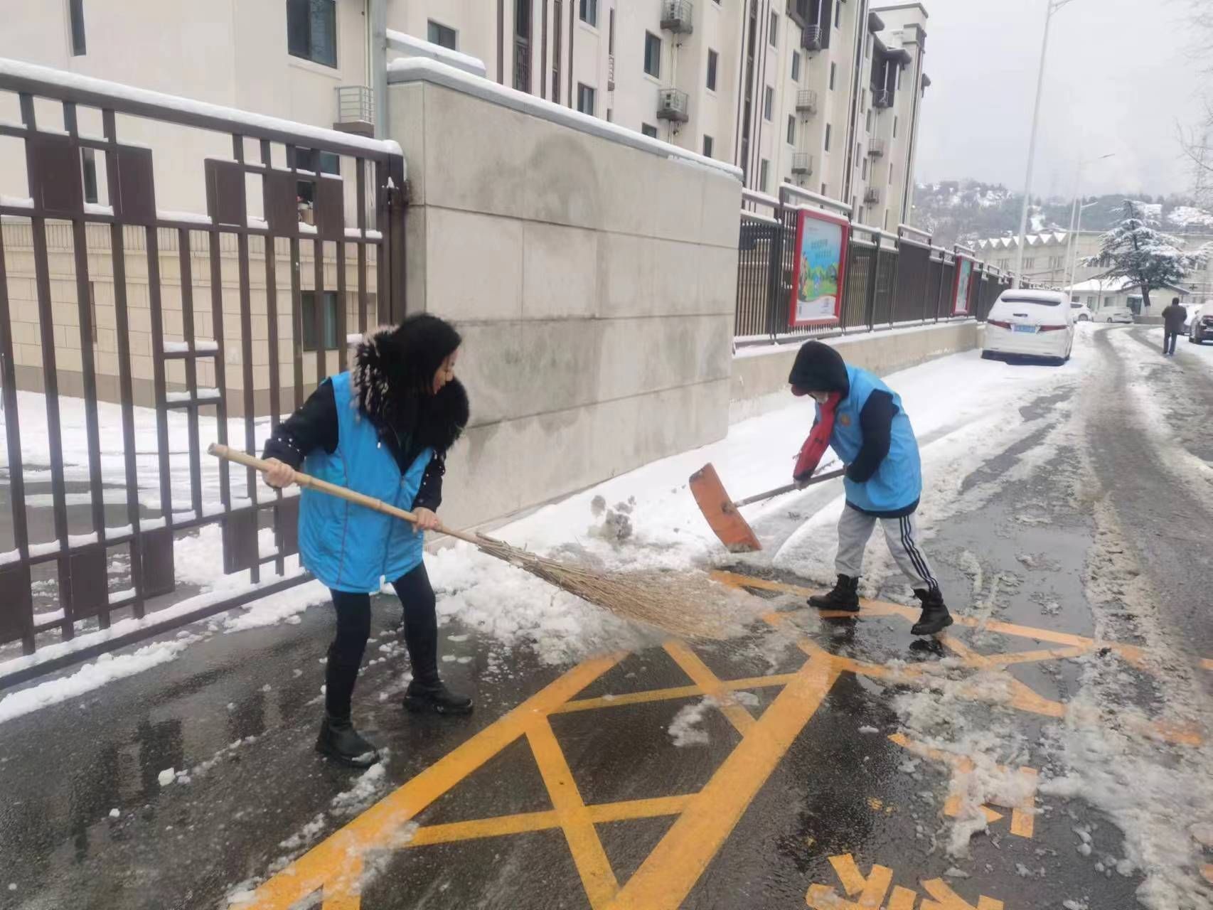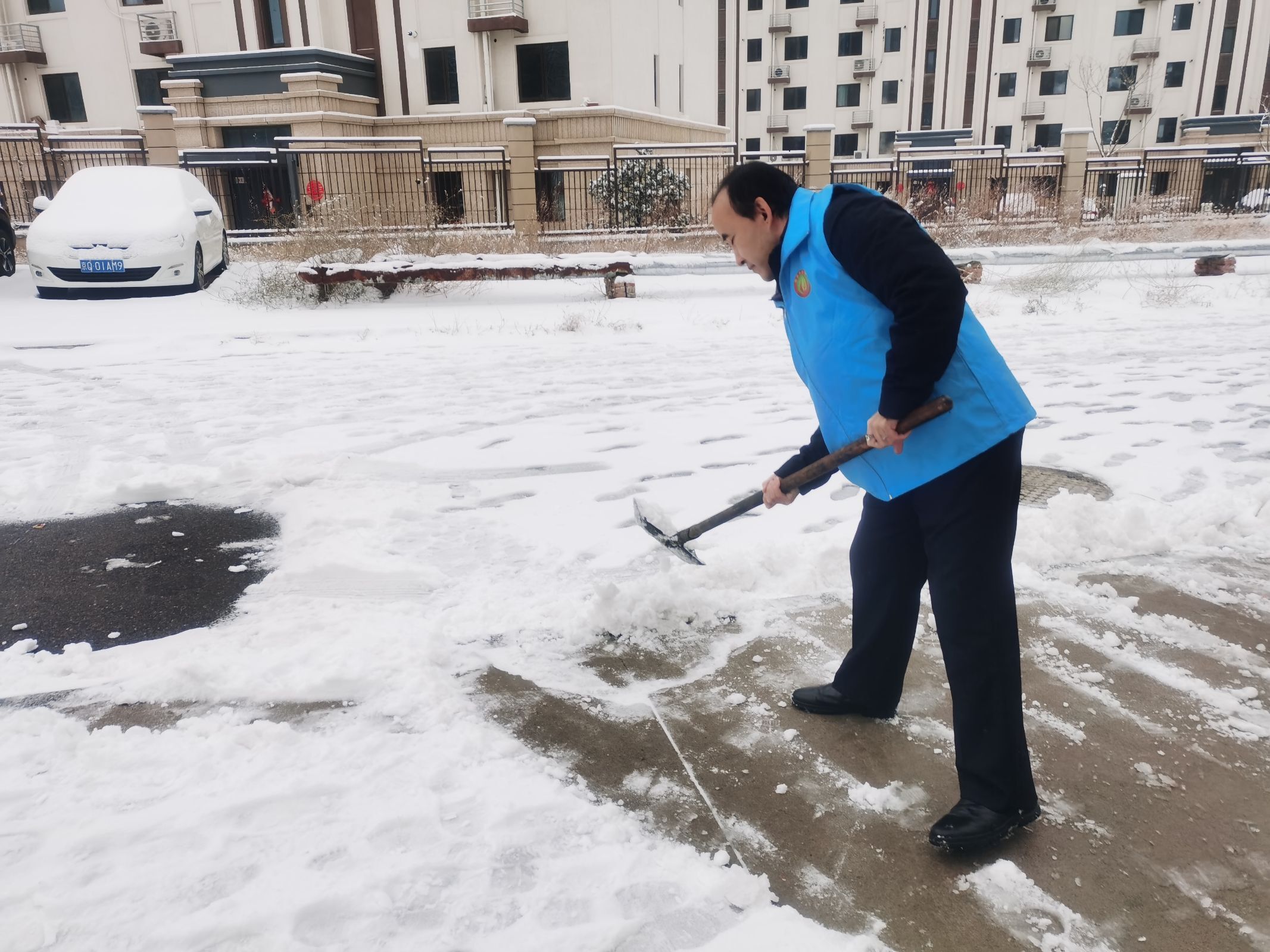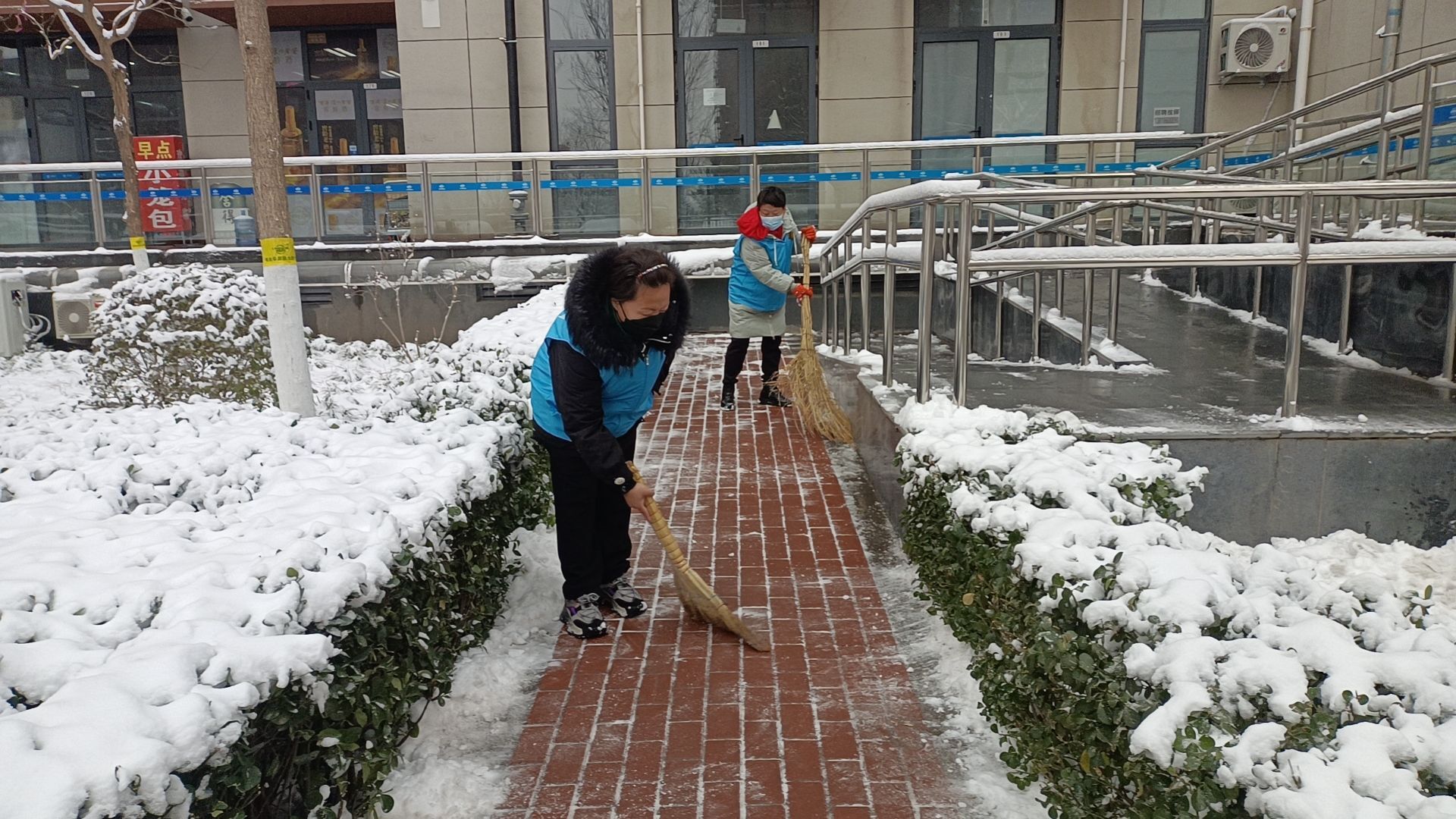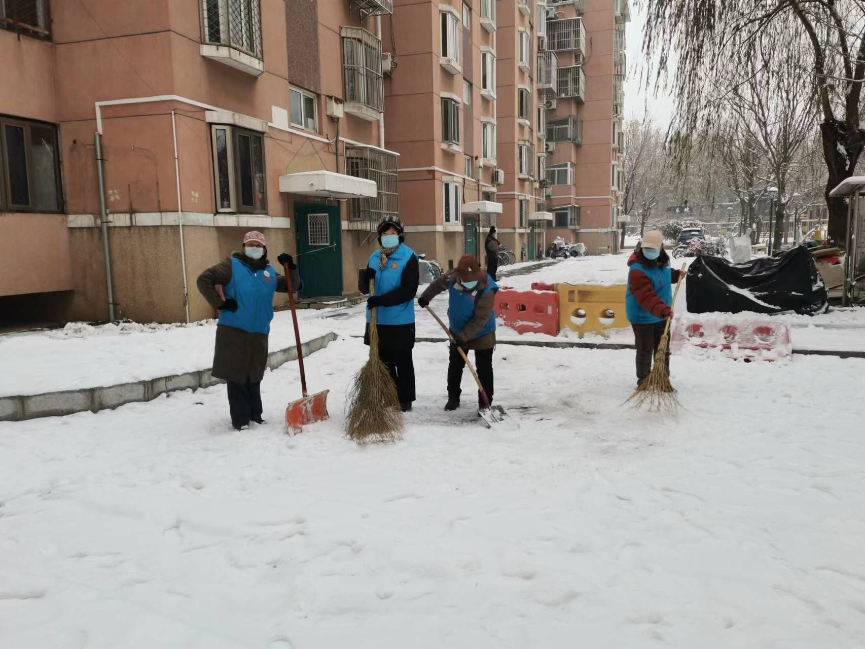 大雪把街道和社区装扮成一片银装素裹,但是美丽如画的雪景也带来了安全隐患。绿萝志愿者顶着大雪,不顾天冷路滑,手持扫把和铁锨等工具、团结协作,由于路面积雪厚重,尤其是随着气温骤降,路面结冰,增加了扫雪铲冰的难度。志愿者们先清除了主干道的积雪,又延伸清扫了人行道,团结一心保障了群众的安全出行,过路的行人纷纷点赞。