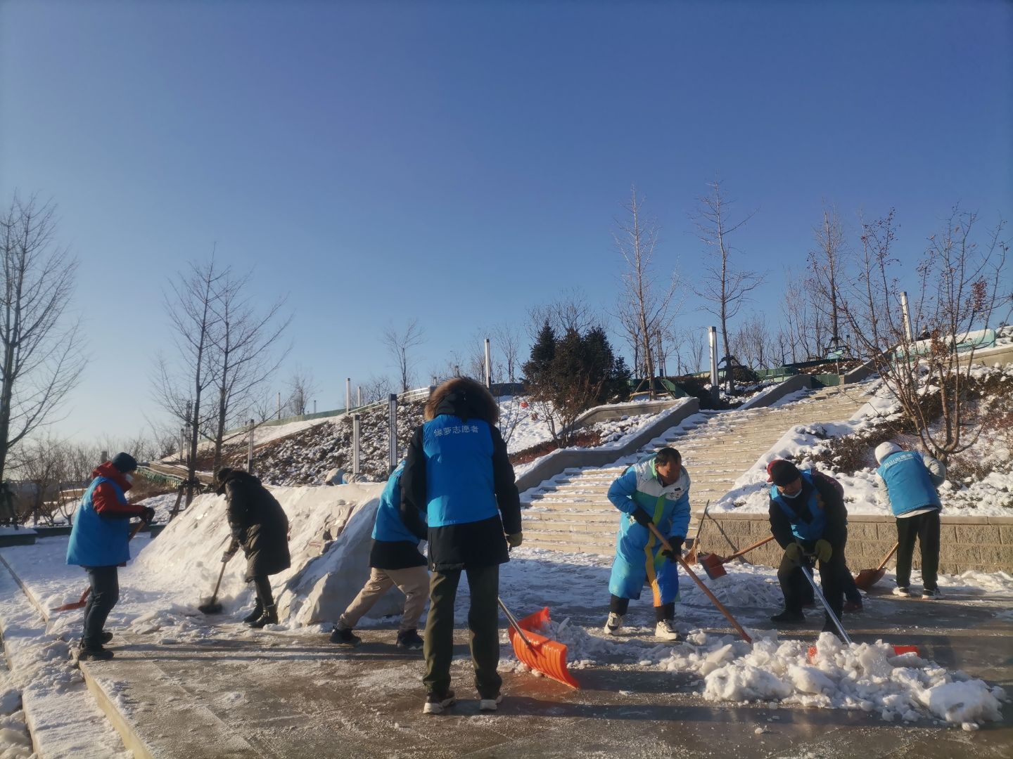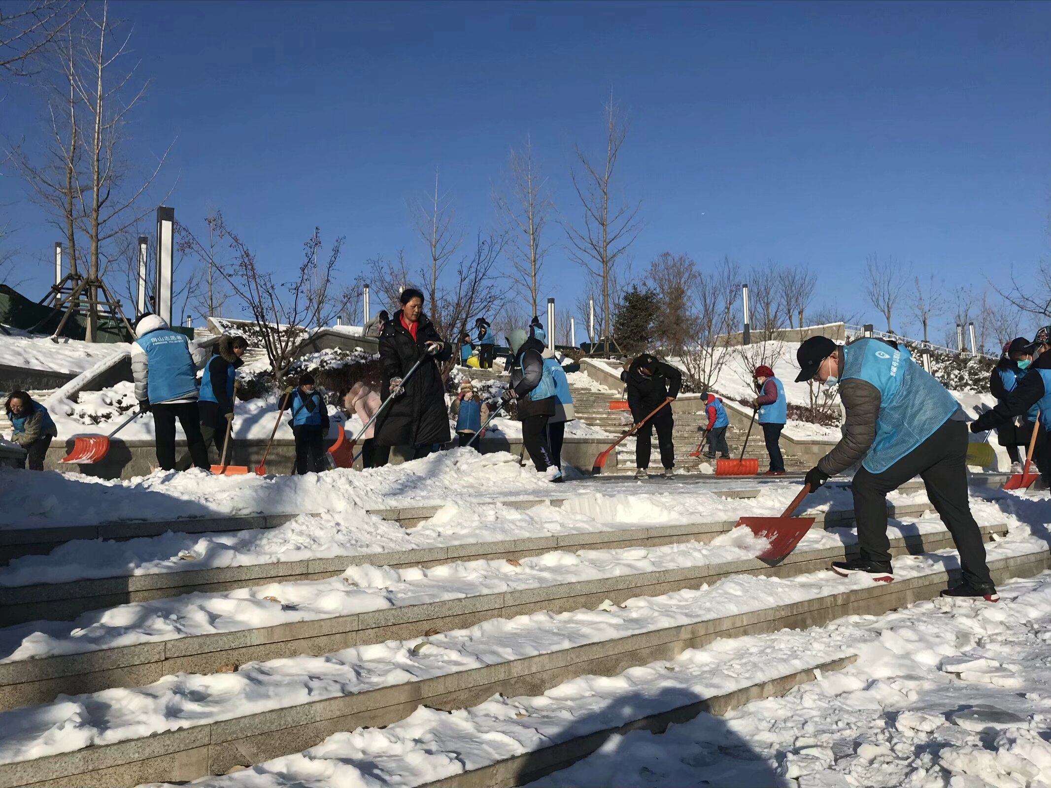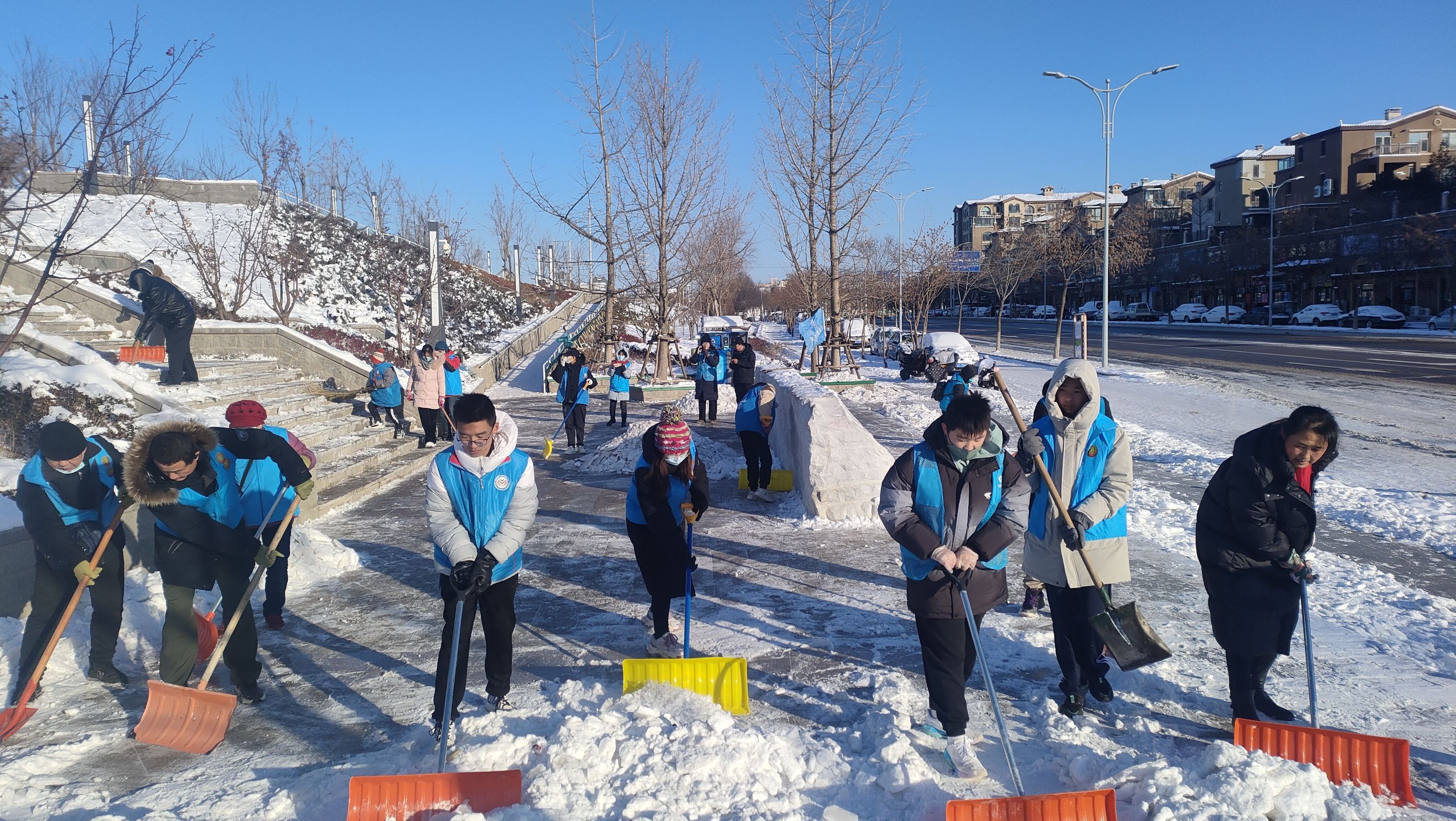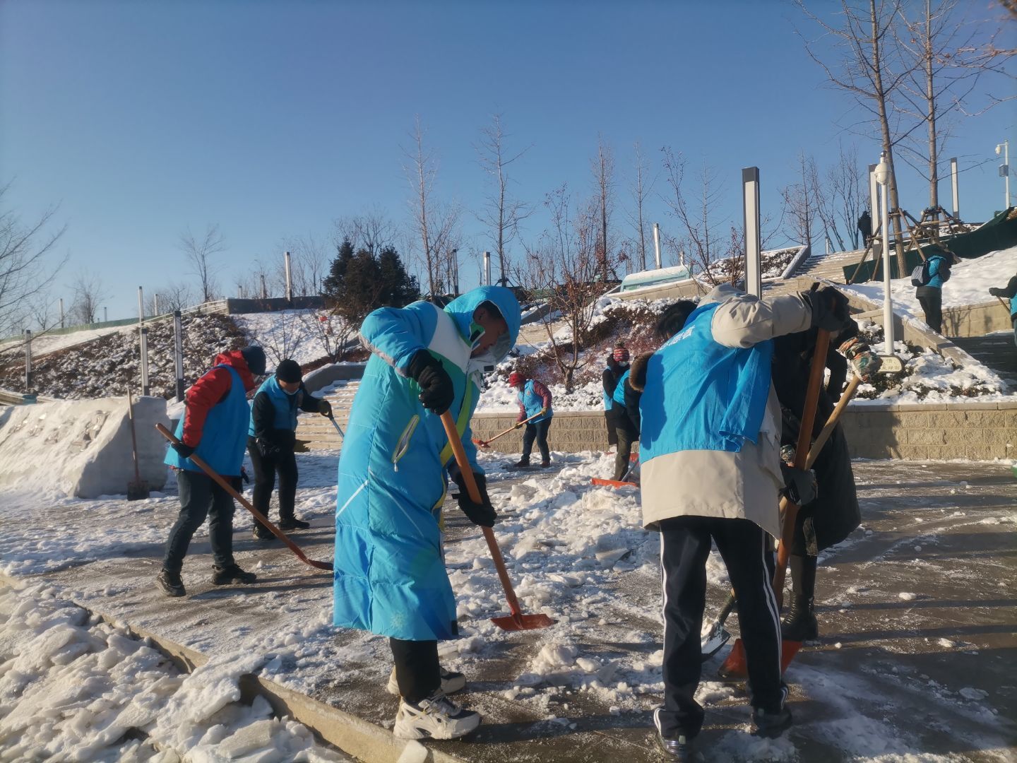 行动是最好的融雪剂。大雪过后的道路是最为寒冷和危险的,地面结冰,行动不便。绿萝志愿服务队充分调动党员先锋模范作用,不顾天冷路滑,手持扫把和铁锨等工具,沿着人行道一点一点的清扫路面的积雪。手套挡不住的是寒冷,寒冷挡不住的是热情,大家不断地铲、推、堆、运,为行人带来了安心与暖心,为居民群众清扫出一条条“平安路”。志愿者用实际行动折射出温暖人心的力量,让居民出行得到了改善,消除了安全隐患。