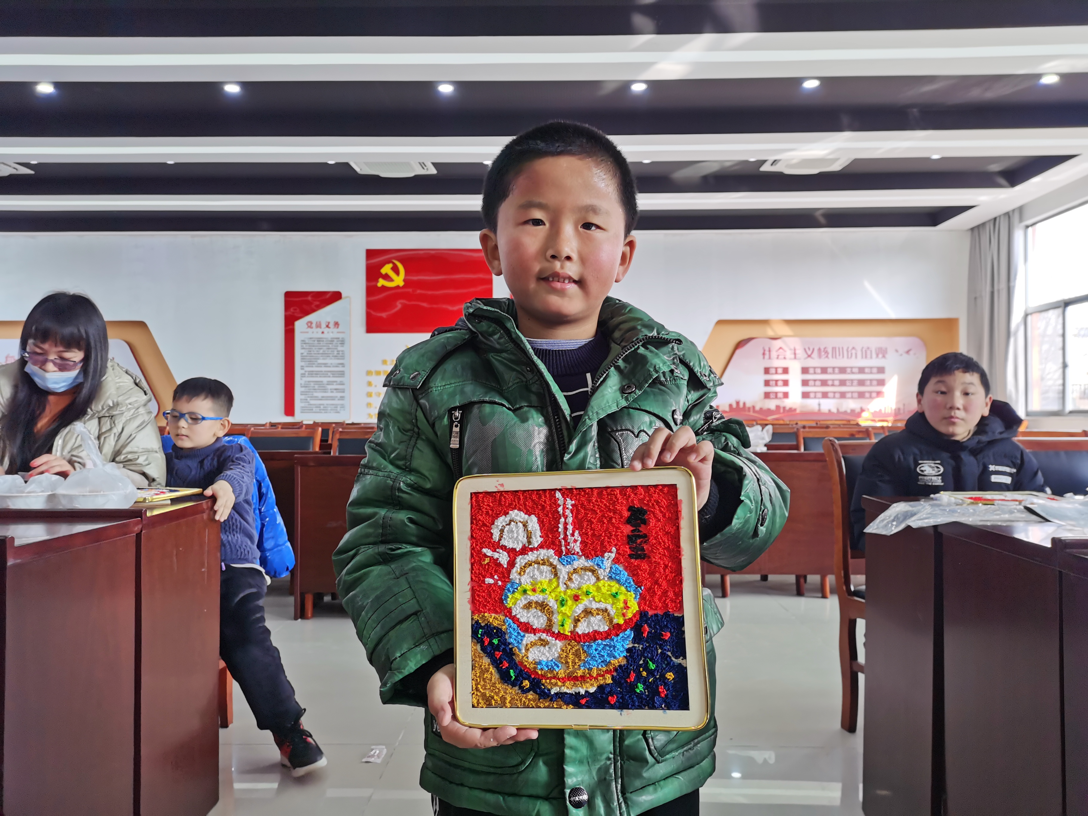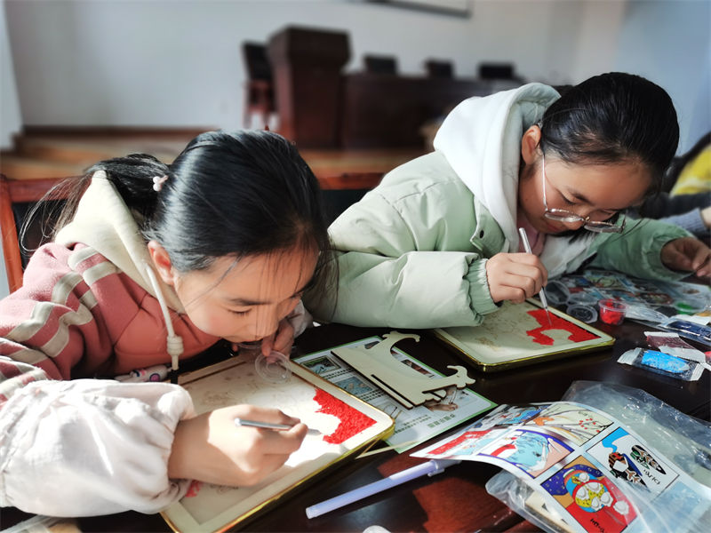 活动现场,青少年们跟随老师一起动手制作非遗“纸浆画”,作为中国民间艺术,纸浆画是以纸浆为主要材料创作的工艺美术作品,历史悠久,内涵丰富,颜色鲜艳,具有浮雕效果。青少年们认真聆听,在老师的指导下,用镊子、竹签等工具,在底板上一点点铺上纸浆,经过一个小时的努力,一幅幅五彩缤纷的纸浆画展现在大家眼前,青少年们脸上洋溢着灿烂的笑容。