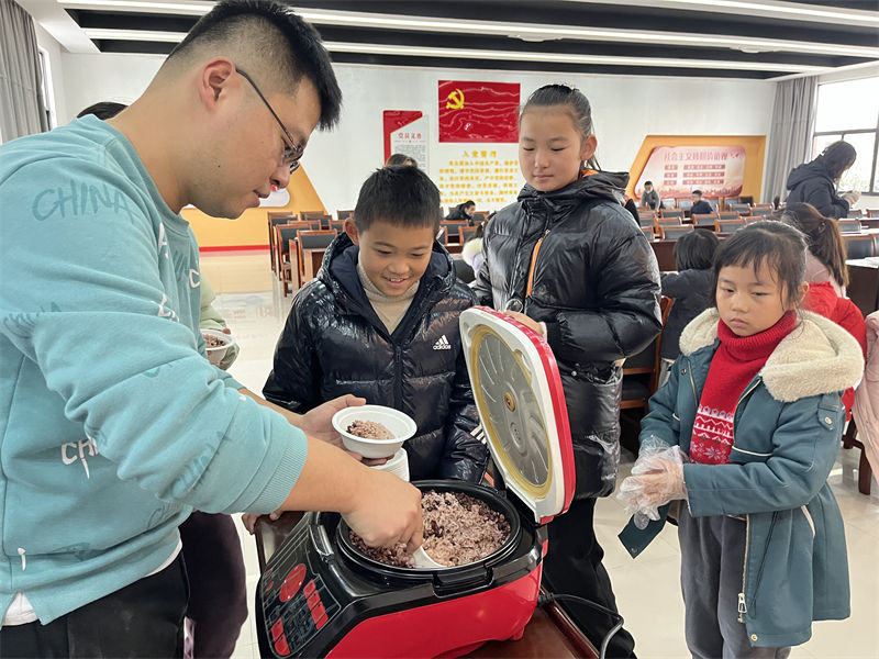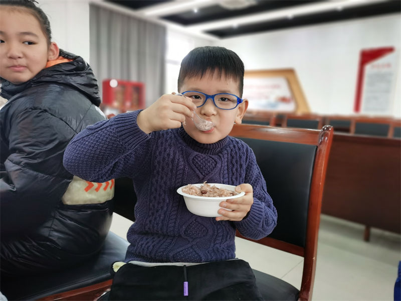 相传,共工氏有不才子,作恶多端,死于冬至这一天,之后变成疫鬼,继续残害百姓。但是这个疫鬼最怕赤豆,于是,人们就在冬至这一天煮吃赤豆饭,用以驱避疫鬼,防灾祛病。活动现场,青少年们在志愿者的带领下,将蒸煮好的“赤豆饭”分发进行品尝,驱避疫鬼,防灾祛病。