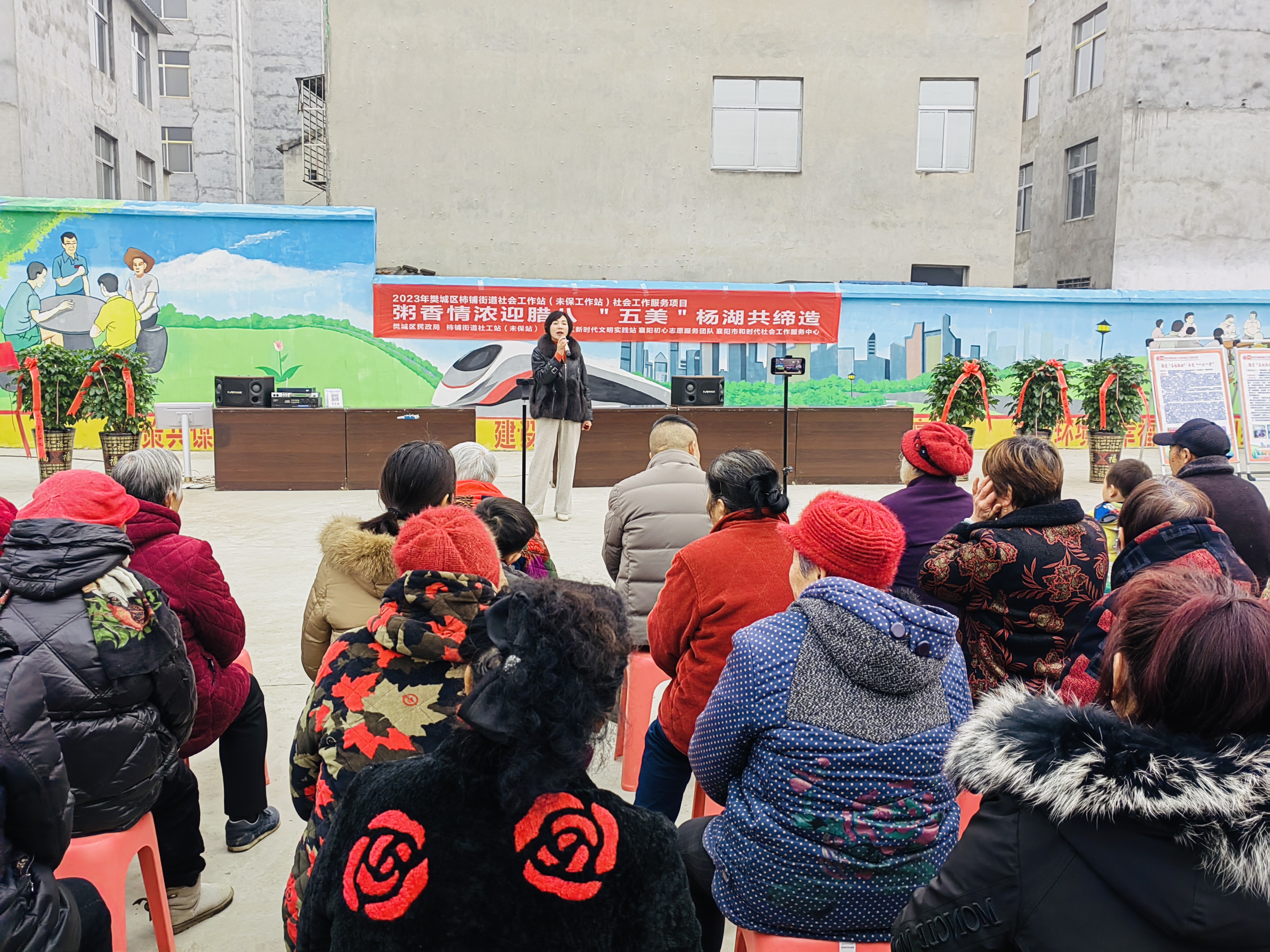 活动开始,杨湖社区负责人杨华利致辞,总结了2023年社区取得的成绩,向所有支持的居民们表达了衷心的感谢,并对2024年的工作进行了展望,同时动员社区居民们都能积极参与到社区各项工作中,充分发扬“人民群众主人翁”主体作用。