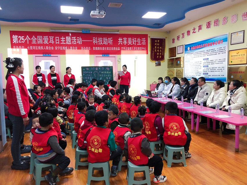 2024年3月1日下午,恰逢3月3日是第二十五个全国爱耳日来临之际,兰州市七里河区残疾人联合会、安宁区残疾人联合会、敦煌路街道任家庄街西社区、兰州启聪聋儿语言康复中心联合举办了以“科技助听,共享美好生活”为主题的公益活动,为兰州启聪的听障儿童及社区的老人科学普及爱耳知识,开展听力测试,用实际行动体现爱耳护耳,关注听力健康的涓涓爱心。