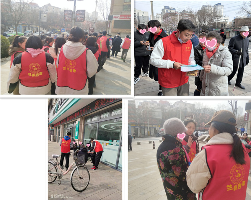 室外活动环节时,敦煌路任家庄街西社区祁主任主动践行公益心,带领兰州交通大学青协志愿者、兰州启聪的老师,一起向辖区居民发放宣传彩页,积极普及讲解听力保健知识。