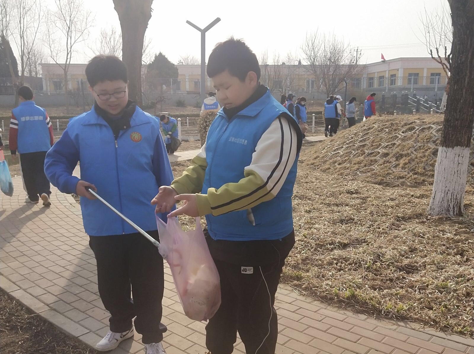 本次的活动中,志愿者们早早的带着工具来到现场,拿着夹子和垃圾袋,对公园内的垃圾进行有序的清理。在人工湖周围加大环境清洁工作,特别是少年志愿者们更是不放过每个角落,特别细致的清理干净。经过志愿者的共同努力,公园的环境焕然一新,在春日的衬托下环境更加优美,湖中的野鸭子也欢快的舞动起来。清理卫生的同时志愿者还向社区路过居民普及节水的重要性,宣传护水的必要性。