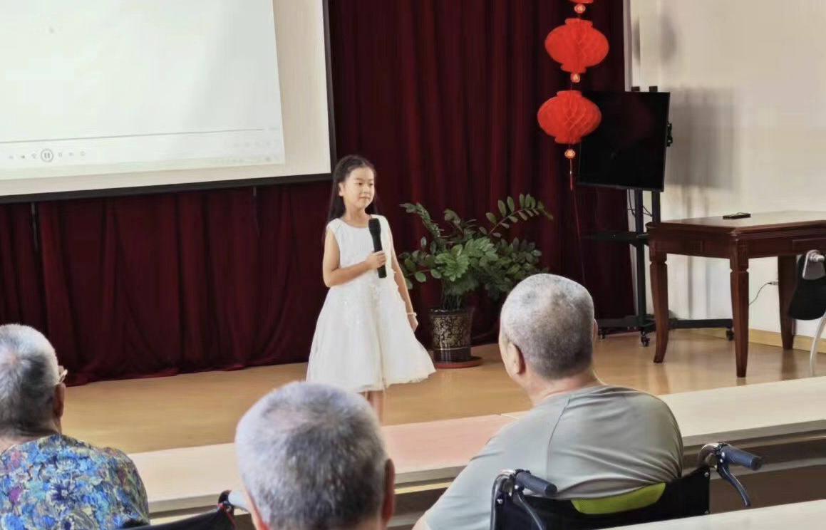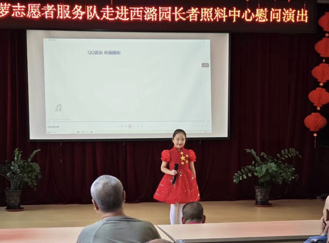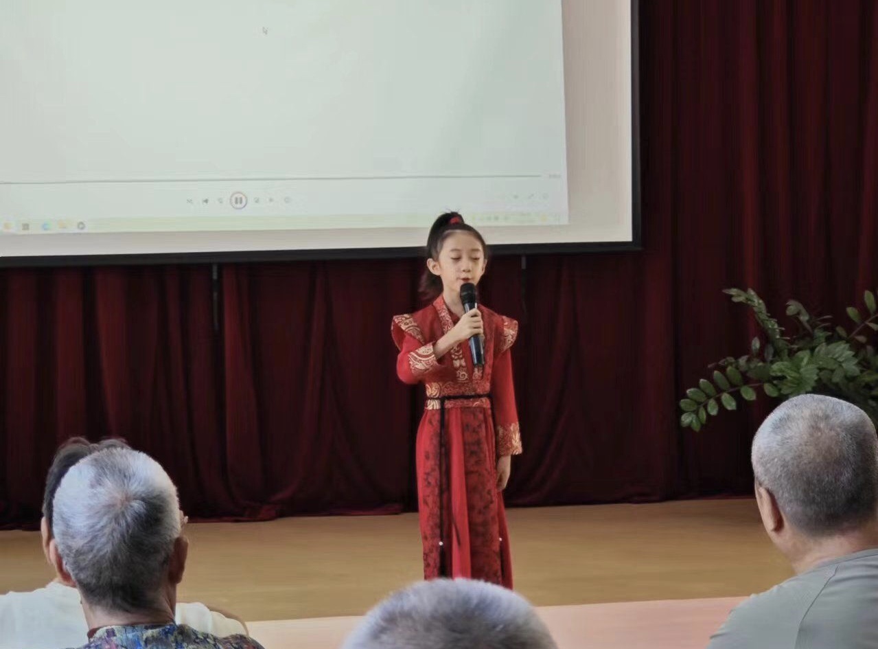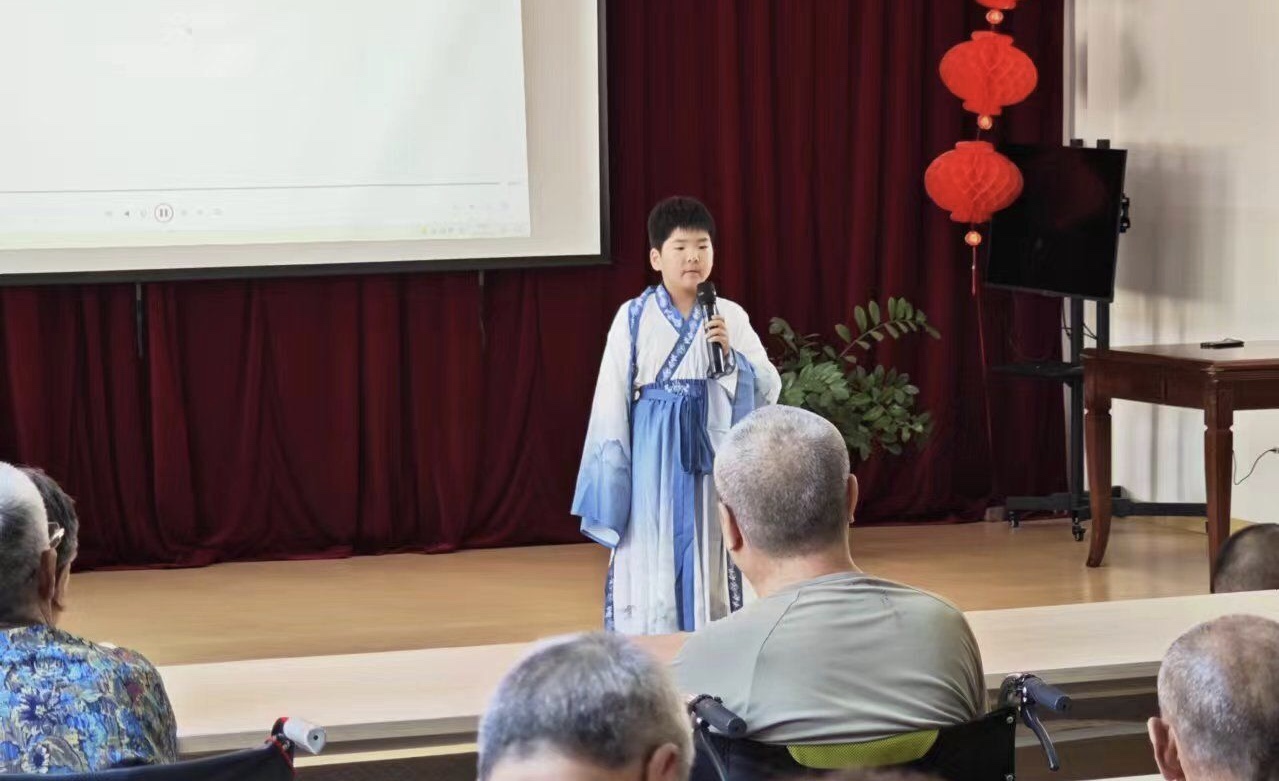 今天的小志愿者来青龙湖中心校和良乡三小等学校。多才多艺的同学们带了舞蹈、诗朗诵、唱歌等各具特色的节目。演出在刘梓辰小朋友的《我骄傲我是中国娃》中拉开了序幕,紧接着任嘉安带来了歌曲《隐形的翅膀》,让在场老人们感受到了孩子们的童真,朱雨菲、鲍紫溪带来了房山区退休校长谢春生老师的诗歌《天安门随想》,表达了对祖国的热爱之情,把今天的活动推向了高潮。双胞胎小姐妹张悦菡、张悦苒带来了精心准备的轻盈又律动的舞蹈,王佳起、卢小米分别朗诵了陋室铭和木兰辞,两首经典的诗歌向观众们传递了祖国语言的优美和中国人的高贵品质,曹艺文小同学用一段手势舞表达了对祖国的热爱之情。紧接着王睿涵、王珞伊、张子萱、于宛如、陈薪羽等同学也带来声情并茂的朗诵节目,节目在陈梓杨同学悦耳动听的歌声《凤凰花开的路口》中落下了帷幕。同学们表演有的虽然显稚嫩,但是都很认真,为孩子们点赞,为幕后默默付出的老师和家长们点赞!