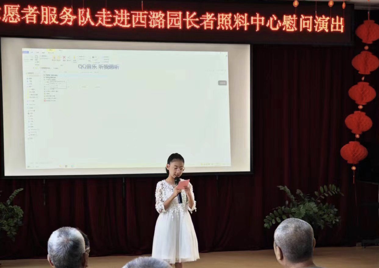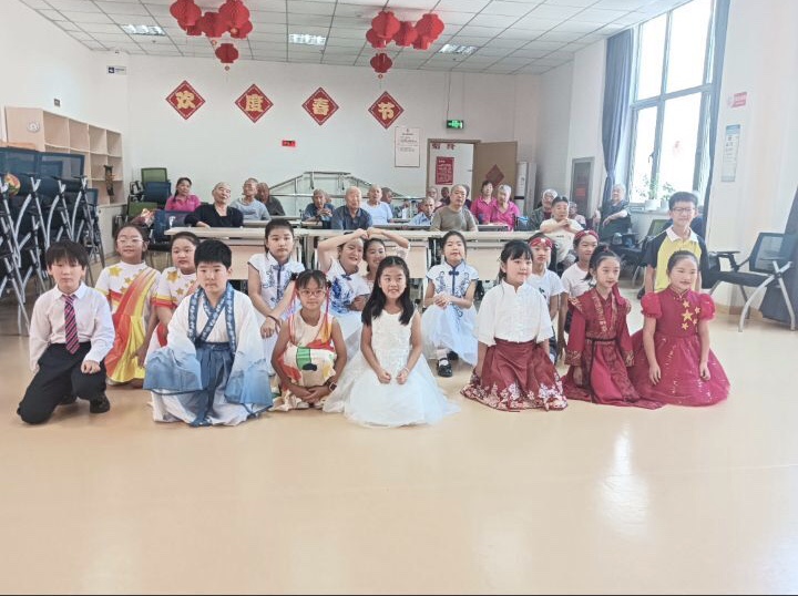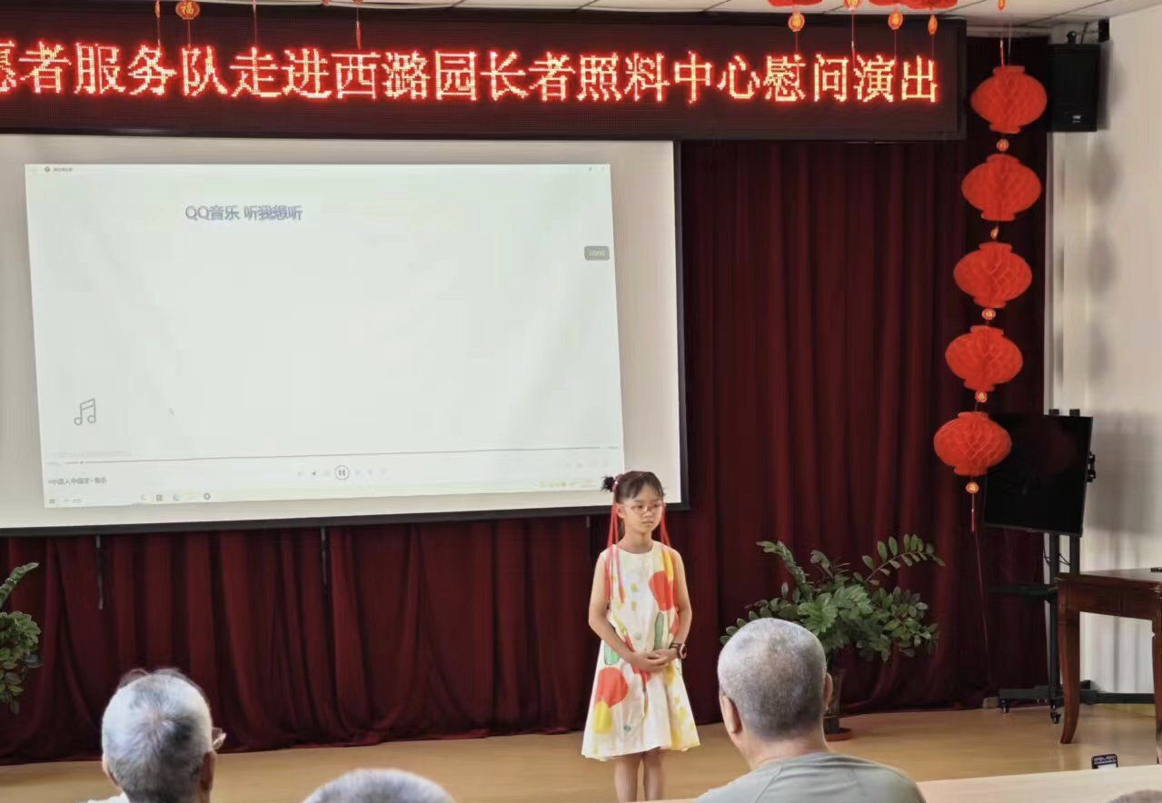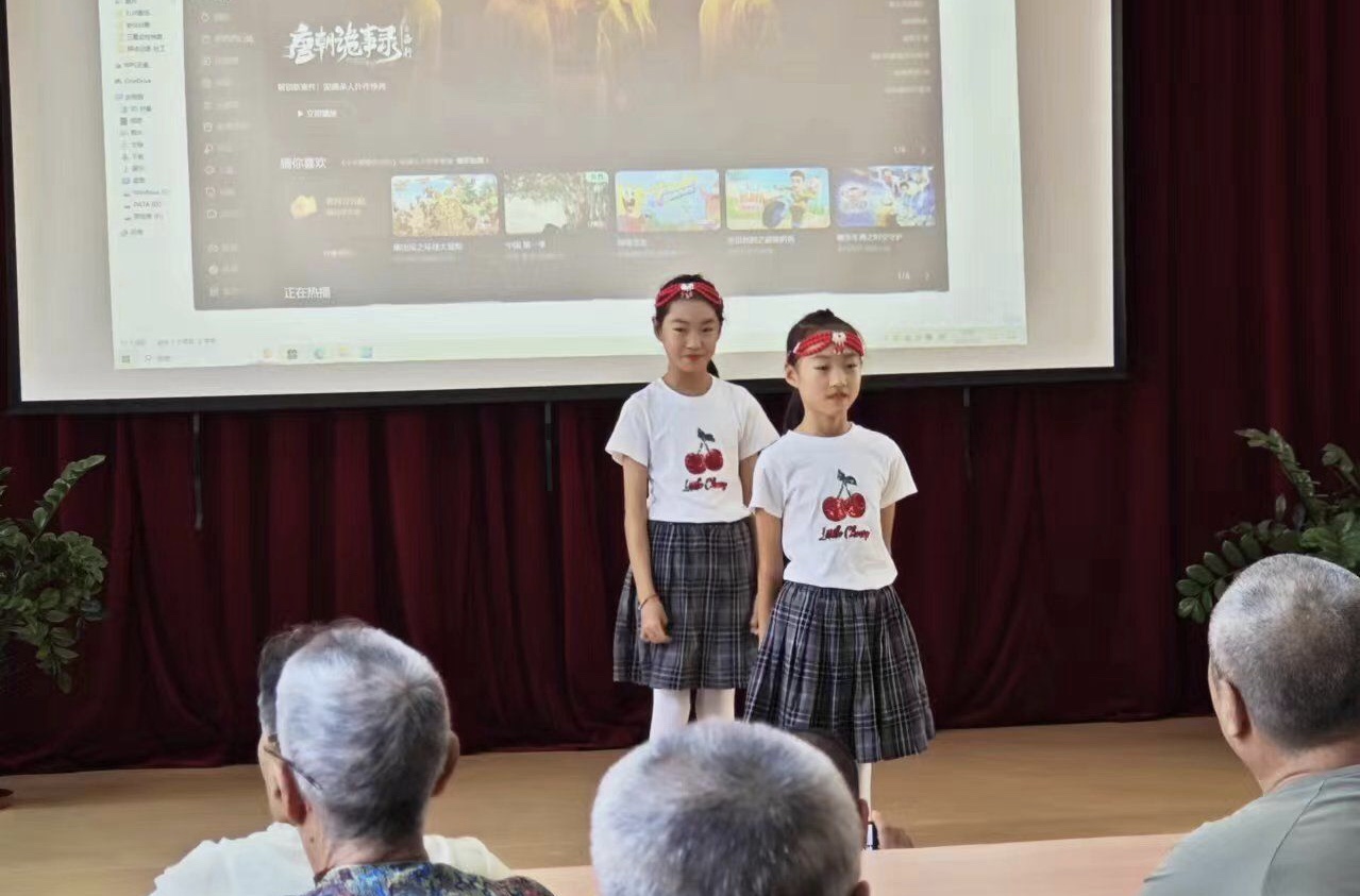 今天的小志愿者来青龙湖中心校和良乡三小等学校。多才多艺的同学们带了舞蹈、诗朗诵、唱歌等各具特色的节目。演出在刘梓辰小朋友的《我骄傲我是中国娃》中拉开了序幕,紧接着任嘉安带来了歌曲《隐形的翅膀》,让在场老人们感受到了孩子们的童真,朱雨菲、鲍紫溪带来了房山区退休校长谢春生老师的诗歌《天安门随想》,表达了对祖国的热爱之情,把今天的活动推向了高潮。双胞胎小姐妹张悦菡、张悦苒带来了精心准备的轻盈又律动的舞蹈,王佳起、卢小米分别朗诵了陋室铭和木兰辞,两首经典的诗歌向观众们传递了祖国语言的优美和中国人的高贵品质,曹艺文小同学用一段手势舞表达了对祖国的热爱之情。紧接着王睿涵、王珞伊、张子萱、于宛如、陈薪羽等同学也带来声情并茂的朗诵节目,节目在陈梓杨同学悦耳动听的歌声《凤凰花开的路口》中落下了帷幕。同学们表演有的虽然显稚嫩,但是都很认真,为孩子们点赞,为幕后默默付出的老师和家长们点赞!